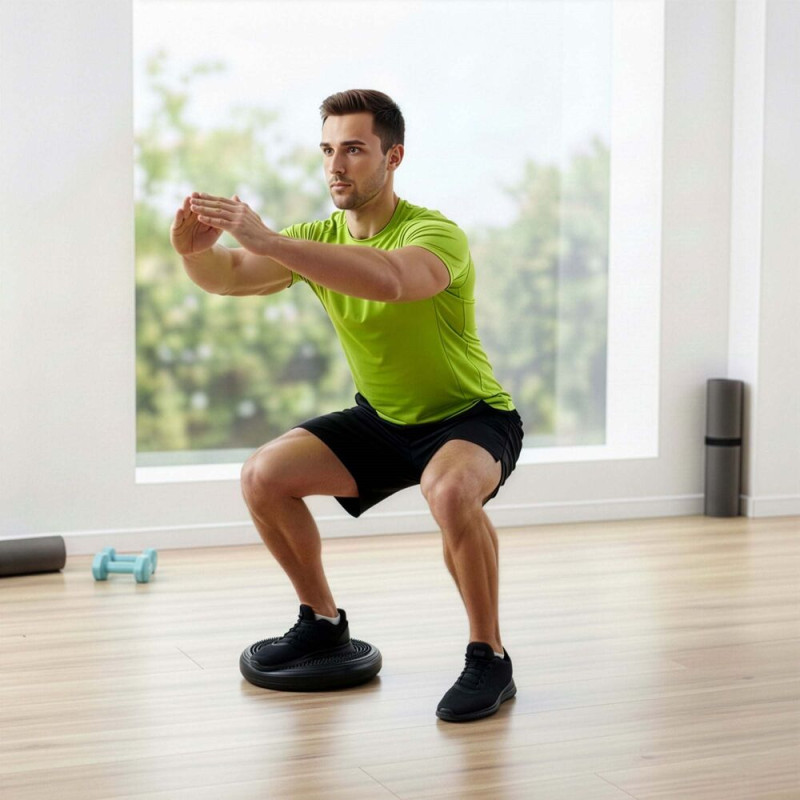 Oboustranné provedení nabízí masážní výstupky na jedné straně a plochou stabilní plochu na druhé, což rozšiřuje možnosti použití. Podložka je vhodná pro trénink rovnováhy, posílení středu těla, aktivní sezení při práci i masáž chodidel. Pravidelné používání podporuje stabilitu, koordinaci i správné držení těla.