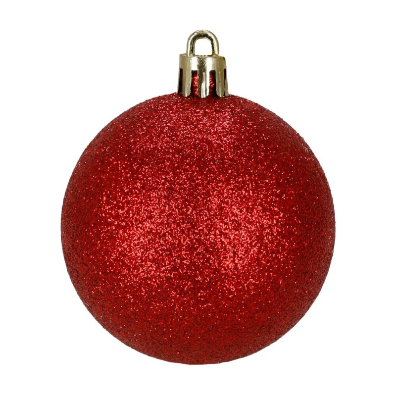 Sada červených vánočních ozdob v různých tvarech a povrchových úpravách dodá výzdobě výrazný a hravý sváteční vzhled. Obsahuje lehké, nerozbitné plastové koule, šišky i ozdoby ve tvaru lízátek a cukrátek, vše s poutky pro snadné zavěšení. Vhodné na stromeček i jako dekorace do interiéru či exteriéru. Průměry koulí: 4 cm, 5 cm a 6 cm.