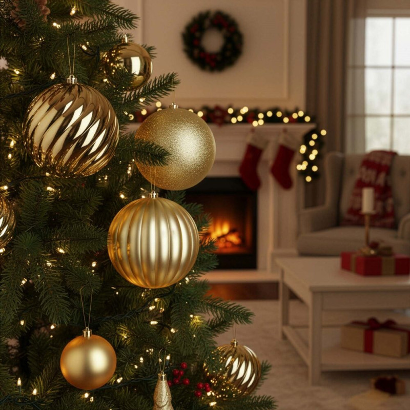Elegantní zlaté vánoční koule s různými strukturovanými povrchy dodají výzdobě luxusní a slavnostní vzhled. Jsou vyrobené z lehkého, odolného plastu a díky připraveným očkům je lze jednoduše zavěsit. Skvěle vyniknou na stromečku i jako samostatná dekorace v interiéru či exteriéru.