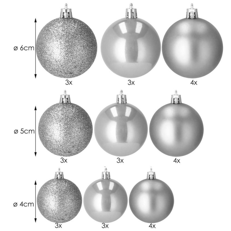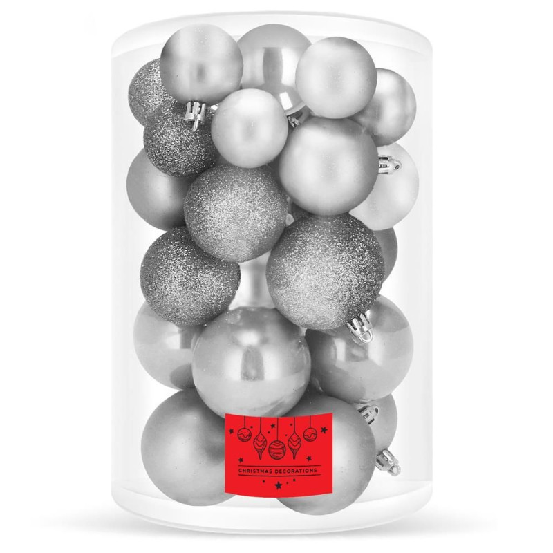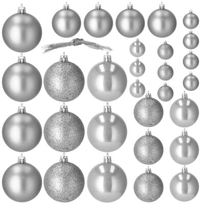 Vánoční baňky stříbrné - 5 velikostí, sada 37ks
