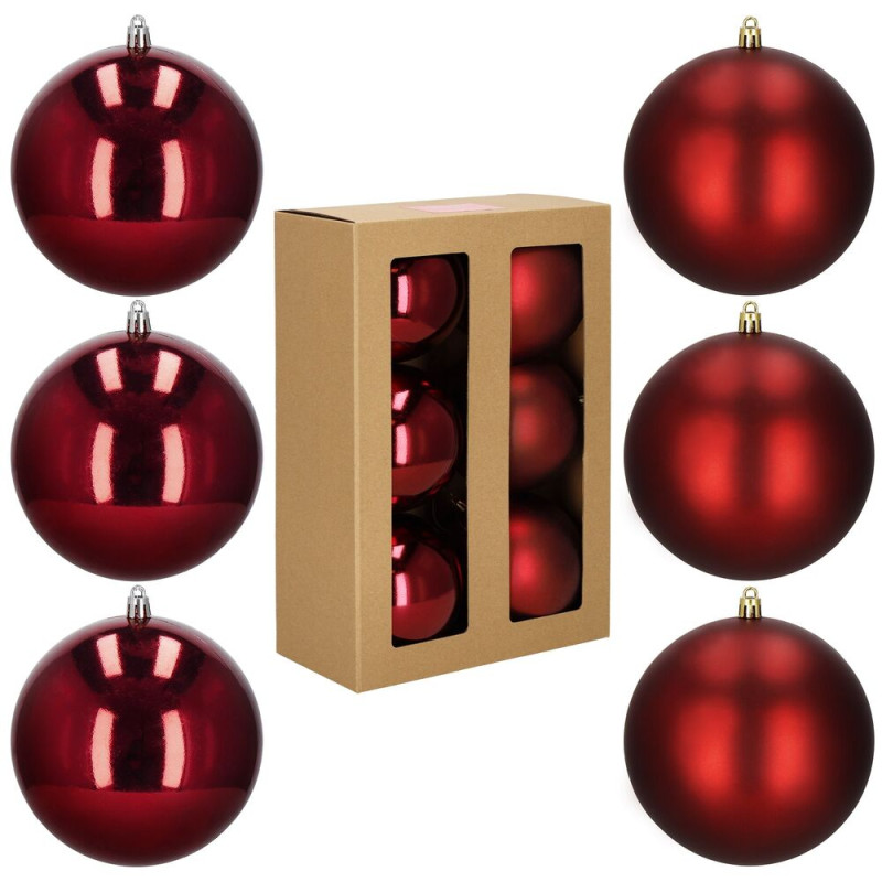 Elegantní sada vánočních ozdob v červeném mixu dodá vaší výzdobě tradiční a slavnostní nádech. Koule o průměru 13 cm jsou ideální na vánoční stromeček i jako samostatná dekorace. Vyrobeny z nerozbitného plastu, vhodné pro vnitřní i venkovní použití. Součástí balení jsou poutka na zavěšení. Celkem 6 kusů v sadě.