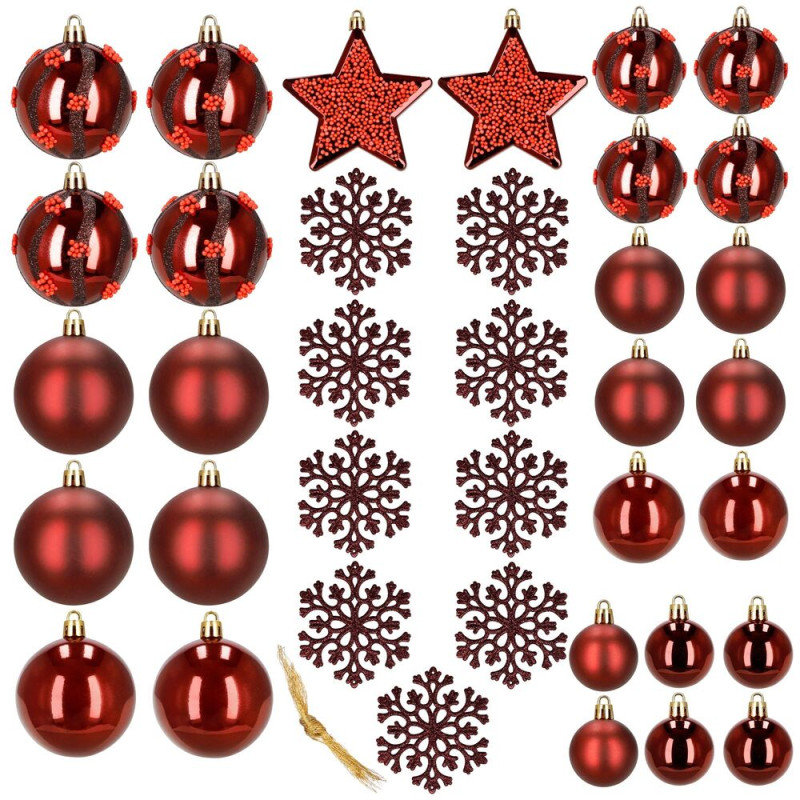 Vánoční baňky červené mix 7/6/5 cm, sada 40ks, CA1523