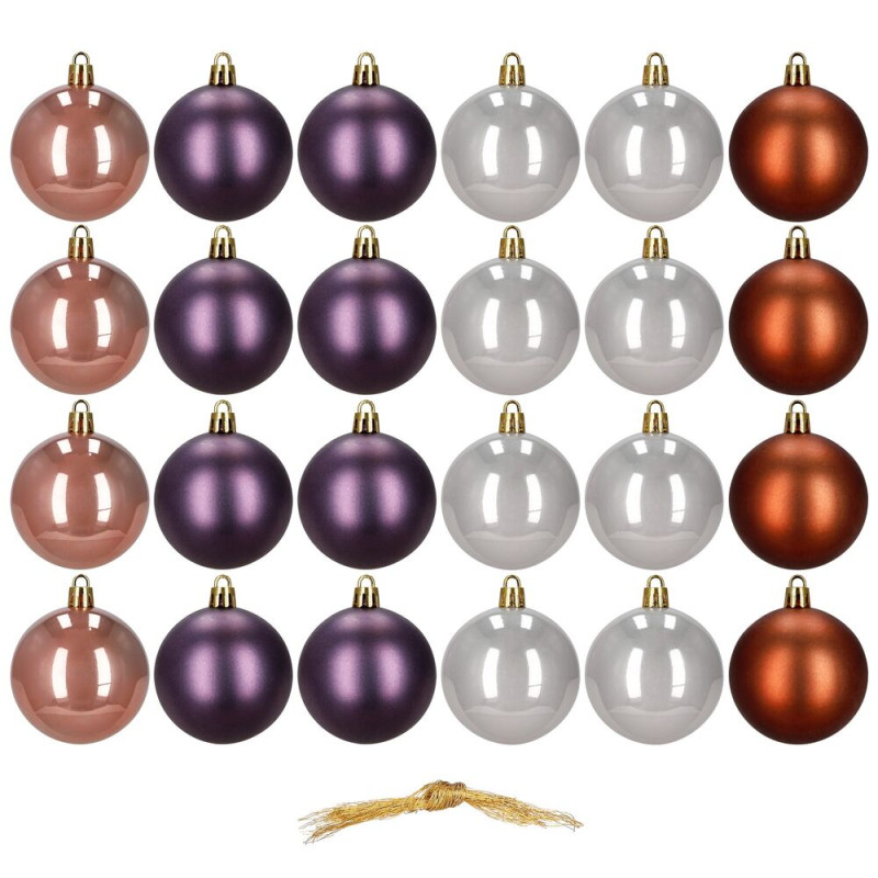 Veselá sada barevných vánočních koulí dodá stromečku moderní a elegantní vzhled. Ozdoby jsou lehké, z nerozbitného plastu a vybavené praktickými poutky pro snadné zavěšení. Skvěle se hodí na stromeček i jako dekorace v interiéru či exteriéru. Průměr jednotlivých koulí je 5 cm.