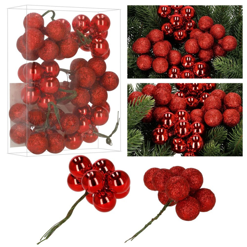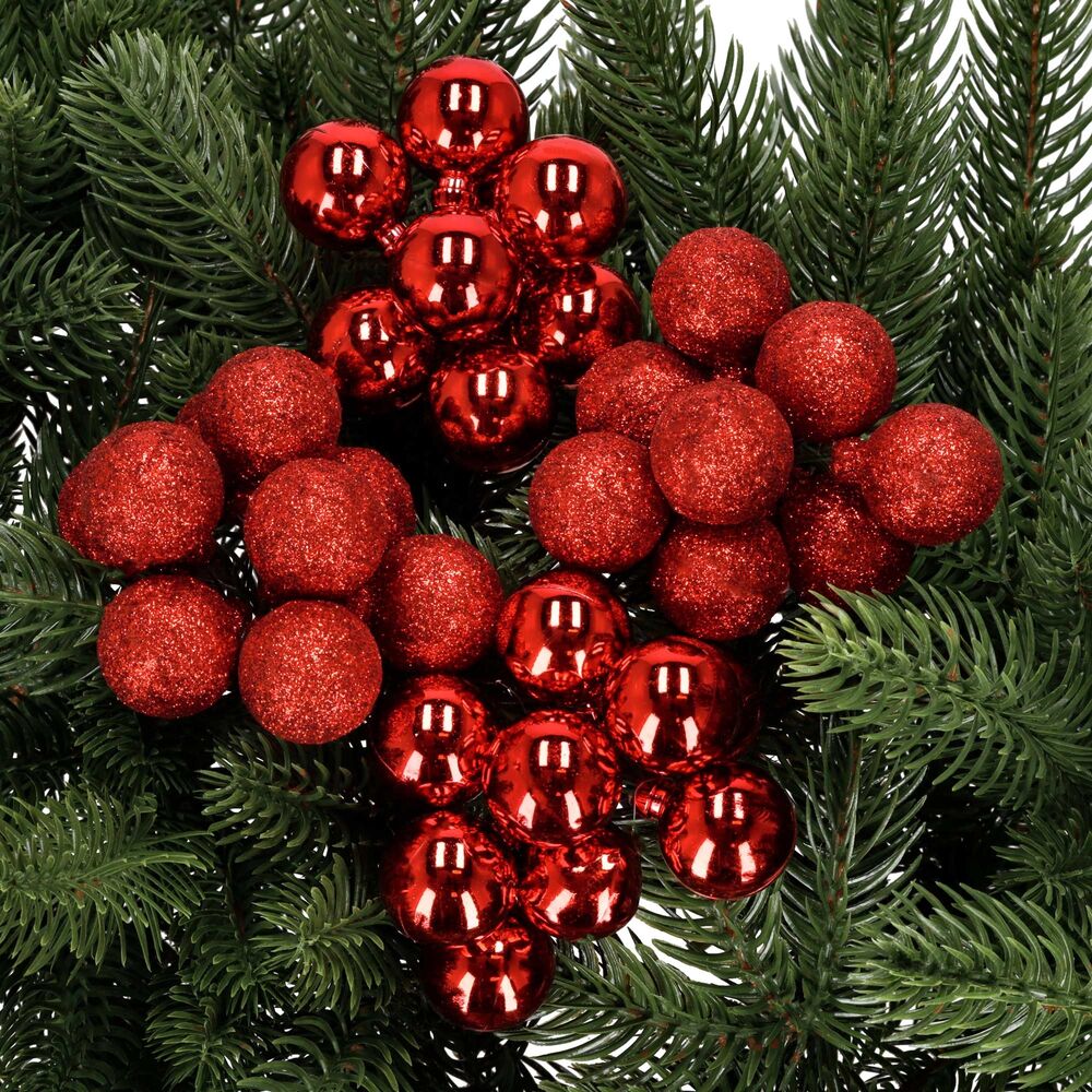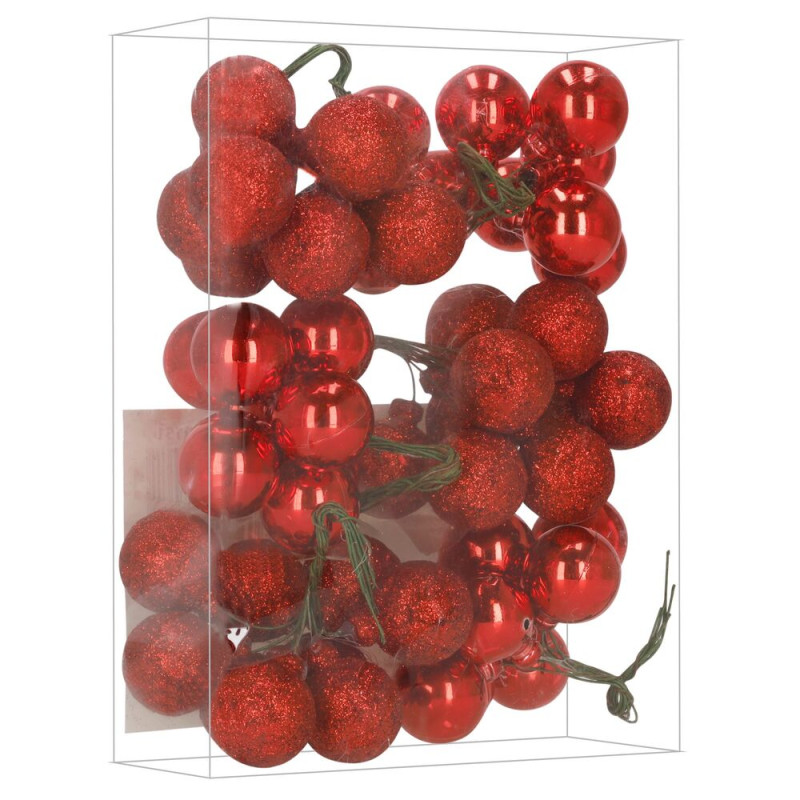Vánoční baňky na drátku červené mix - 2cm sada 54ks, vánoční ozdoby