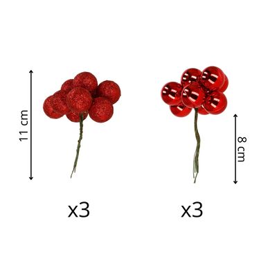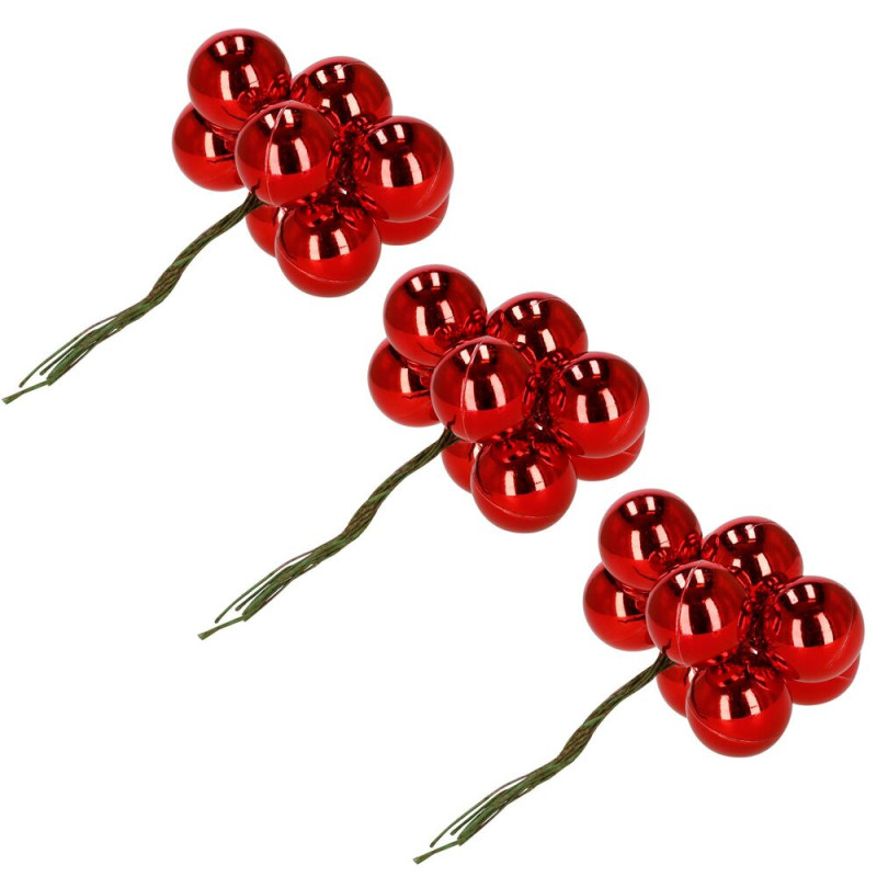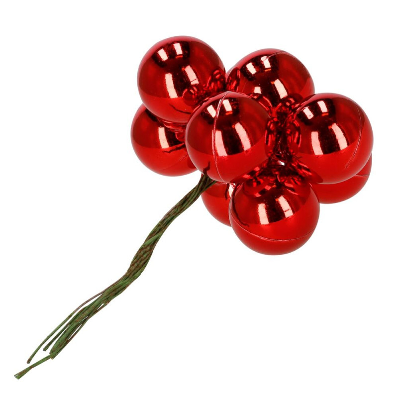 Dekorační mini baňky na drátku v krásné červené barvě skvěle doplní vánoční stromek, věnce či jiné aranžmá. Kombinace lesklých a třpytivých povrchů dodává dekoraci hloubku a jiskru. Díky jemnému drátku je můžete snadno připevnit kamkoli a vytvořit tak originální vánoční výzdobu přesně podle vaší fantazie.
