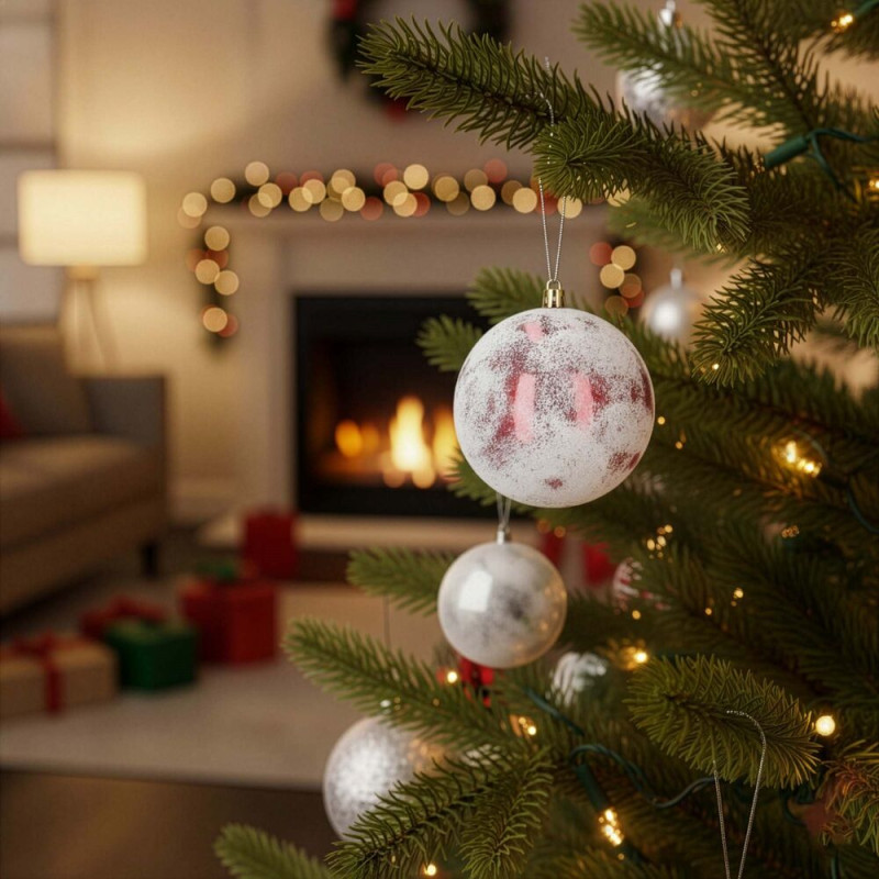 Ozdoby jsou vyrobeny z nerozbitného plastového materiálu, který zajišťuje dlouhou životnost a bezpečné používání. Praktická poutka pro zavěšení umožňují rychlou a pohodlnou instalaci. Díky své odolnosti jsou vhodné pro vnitřní i venkovní použití, takže bez problémů ozdobí i terasu či balkon. S průměrem 9,5 cm vytvářejí dekorativní a výrazný prvek na každé větvičce a celkem 12 kusů v sadě poskytne dostatek ozdob pro bohatou a stylově sladěnou vánoční výzdobu.