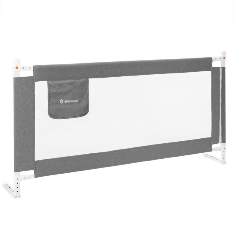 Zábrana na postel 160 cm SPRINGOS HA7527 šedá je praktickým řešením pro rodiče, kteří chtějí zvýšit bezpečnost dítěte během spánku i denního odpočinku. Vyniká pevnou a stabilní konstrukcí z nerezové oceli, kterou doplňuje odolná nylonová síťovina s dobrou viditelností, umožňující mít dítě neustále pod kontrolou. Díky kvalitním materiálům a promyšlenému provedení nabízí dlouhou životnost a spolehlivé používání. Moderní šedé barevné provedení se navíc snadno sladí s interiérem ložnice.