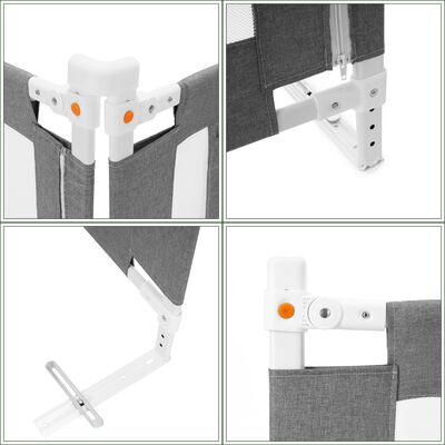 Zábrana je navržena pro snadnou montáž podle přiloženého návodu a umožňuje jednoduché zvedání a spouštění pomocí bočních tlačítek, což oceníte při manipulaci s dítětem. Další předností je možnost spojení více zábran dohromady, díky čemuž lze zajistit větší plochu postele. Toto řešení přináší rodičům větší klid a dětem bezpečnější prostředí pro spánek i odpočinek.