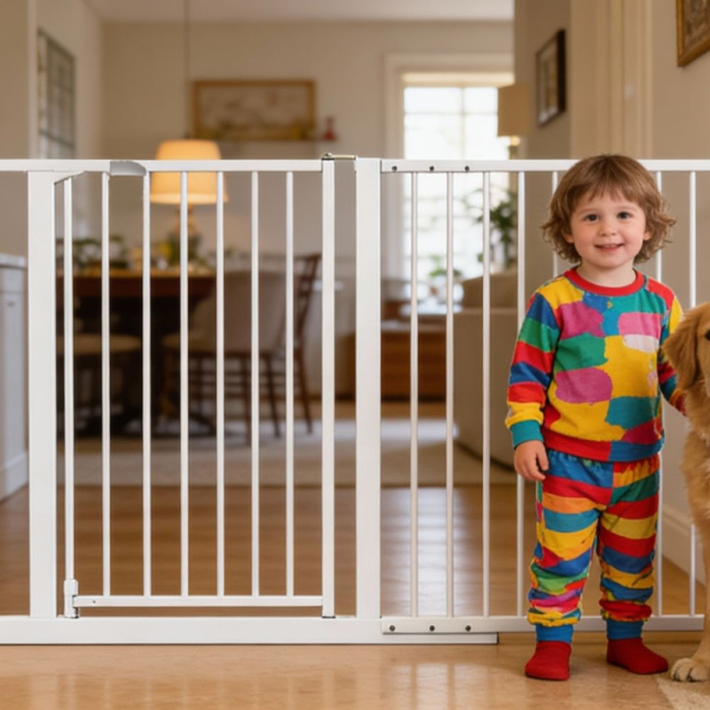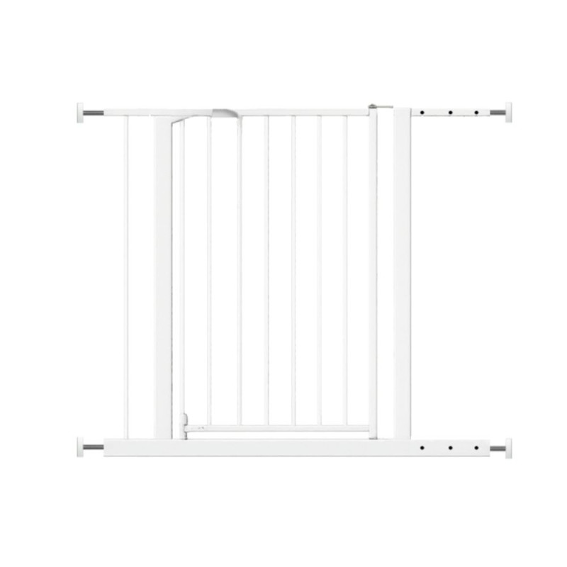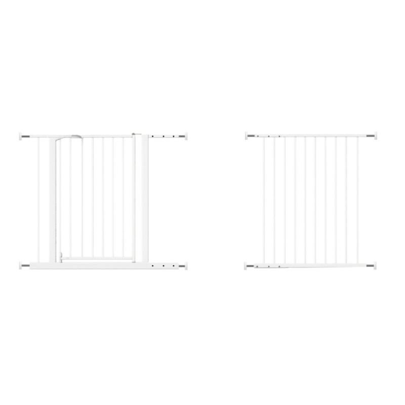 Kovová bezpečnostní zábrana s praktickou brankou pro ochranu dětí i domácích mazlíčků. Univerzální řešení pro montáž do dveří i na schody (montáž vyžaduje vrtání). Dvoudílné provedení umožňuje flexibilní nastavení šířky. Otevíratelná branka je vybavena bezpečnostní pojistkou proti náhodnému otevření. Zaoblené hrany a pevná konstrukce z kalené oceli zajišťují bezpečnost i dlouhou životnost. Pasuje do otvorů 70–80 cm, 86–96 cm a 128–145 cm. Výška 76 cm. Certifikace EN 1930:2011.