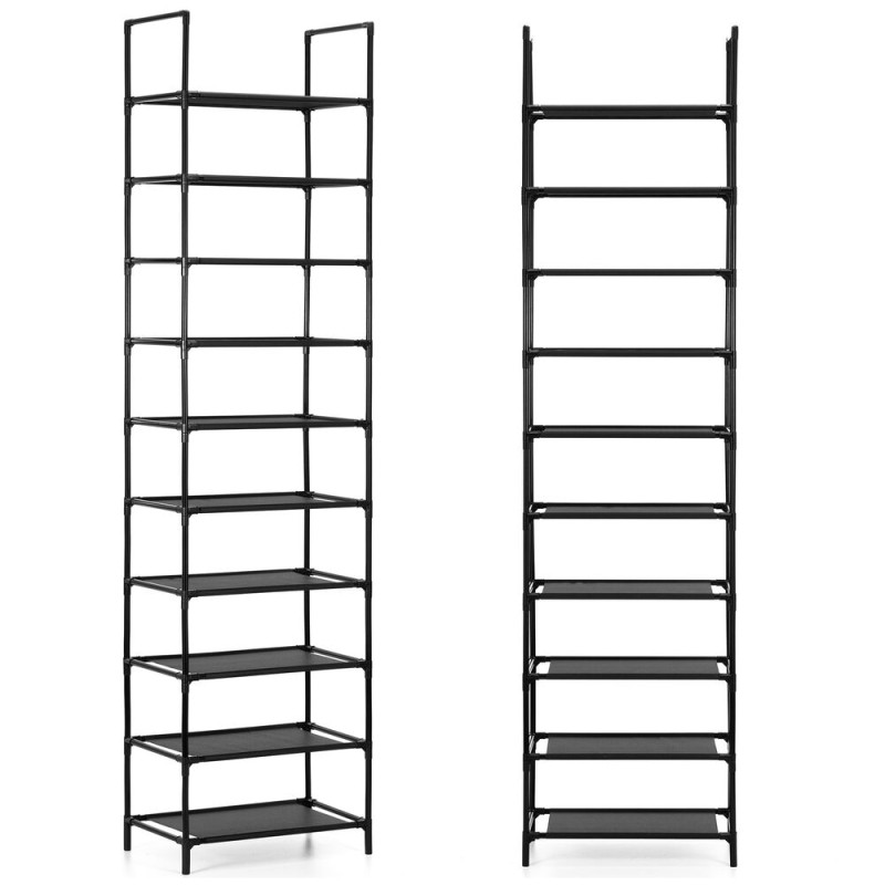 Kovový botník 10 polic SPRINGOS HA7550 černý je praktickým řešením pro přehledné uložení velkého množství obuvi v předsíni, chodbě nebo šatně. Díky deseti policím nabízí dostatek prostoru pro každodenní i sezónní boty celé rodiny. Vysoké a úzké provedení efektivně šetří místo a umožňuje využít i menší prostory bez omezení průchodu.