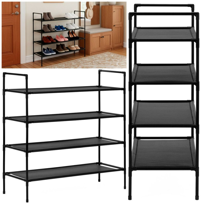 Kovový botník 4 police SPRINGOS HA7549 černý je praktickým řešením pro přehledné uložení obuvi v předsíni, chodbě nebo šatně. Díky čtyřem policím nabízí dostatek prostoru pro každodenní i sezónní boty a pomáhá udržet pořádek i v domácnostech s omezeným místem. Kompaktní rozměry umožňují snadné umístění bez zbytečného zabírání prostoru.