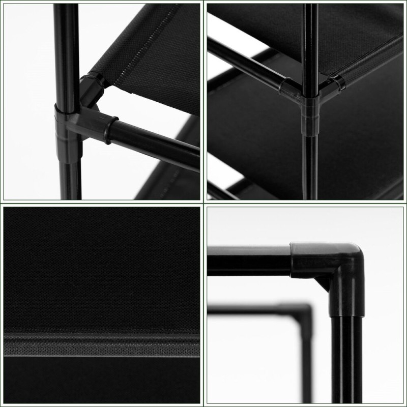 Jednoduchý černý design se snadno sladí s různými styly interiéru a působí nenápadně i elegantně. Výhodou je také snadná montáž podle přiloženého návodu, kterou zvládnete rychle a bez speciálního nářadí. Botník tak představuje praktické, funkční a prostorově úsporné řešení pro každodenní organizaci obuvi.