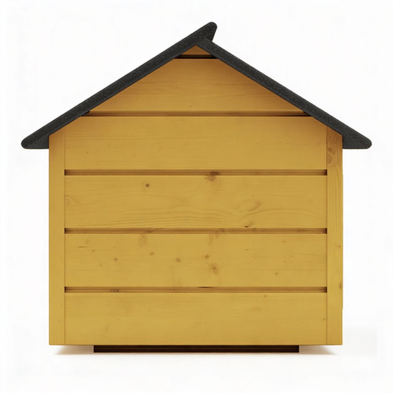 Psí bouda vhodná pro celoroční venkovní použití. Dřevěná konstrukce se sendvičovým zateplením poskytuje ochranu před chladem i vlhkostí. Lamelový vchod omezuje průnik větru, sedlová voděodolná střecha chrání před deštěm a sněhem. Vyvýšená izolovaná podlaha zajišťuje suché a teplé prostředí pro pohodlí psa v každém počasí. Rozměry vstupu 19x23 cm, celkové rozměry 63x54x55 cm.