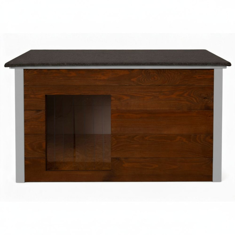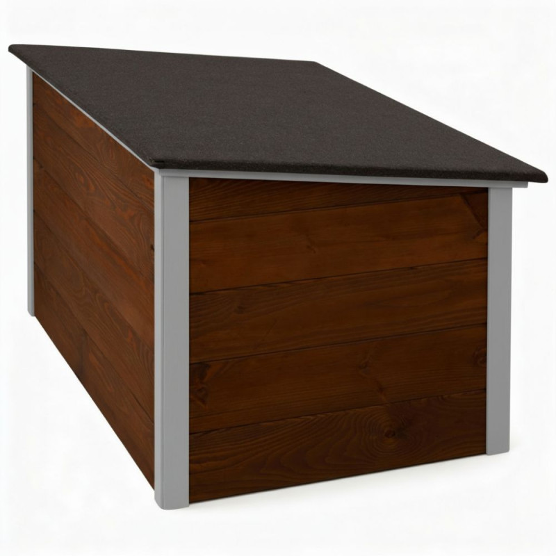 Zatepletá bouda pro psa 106x72x67 cm DECHLAND BP06 hnědo-šedá je ideálním řešením pro majitele, kteří chtějí svému psovi zajistit pohodlí po celý rok. Díky sendvičovému zateplení poskytuje ochranu před chladem, větrem i horkem. Dřevěná konstrukce je pevná a odolná, vhodná pro dlouhodobé venkovní použití.