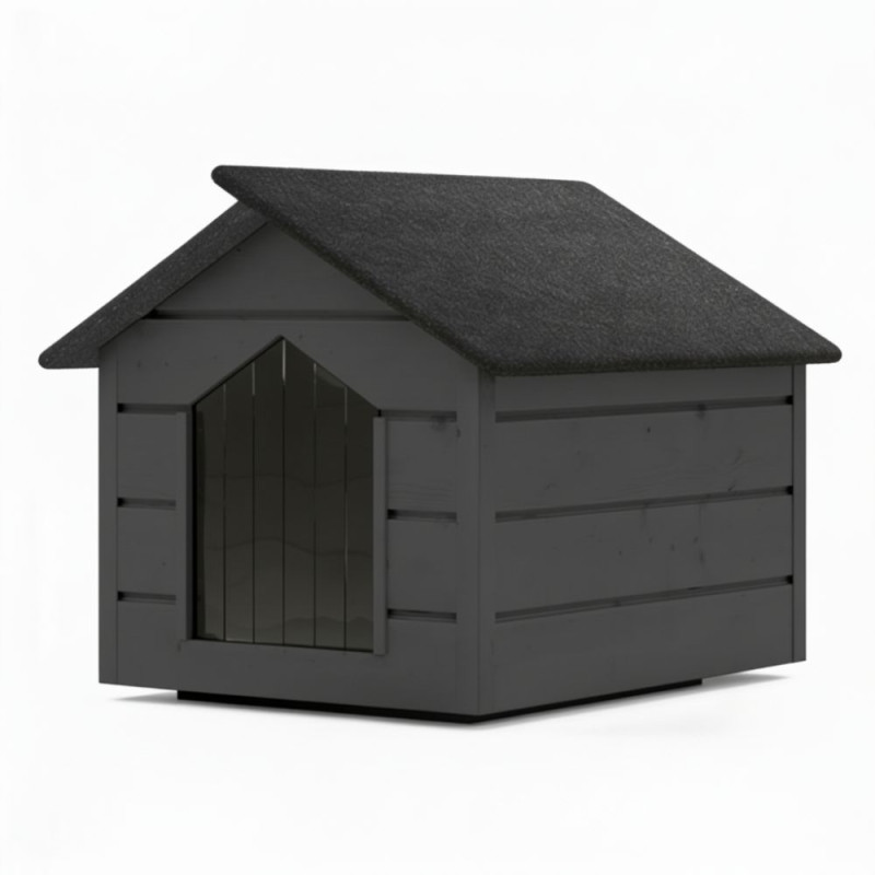 Psí bouda pro střední plemena psů určená pro celoroční venkovní použití. Dřevěná bouda se sendvičovým zateplením zajišťuje tepelný komfort v každém počasí. Lamelový vchod omezuje průnik chladu a větru. Sedlová voděodolná střecha chrání před deštěm i sněhem. Vyvýšená izolovaná podlaha udržuje vnitřní prostor suchý a teplý. Celkové rozměry 80x64x61 cm, rozměry vstupu 36x27 cm.