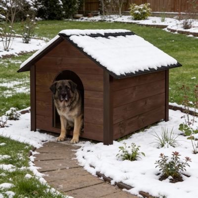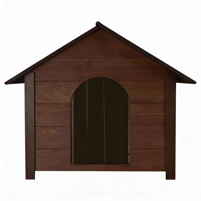Zateplená bouda pro psa XL 72x116x81 cm DECHLAND BP04 hnědá je navržena speciálně pro větší plemena, která potřebují dostatek prostoru a pohodlí. Prostorný vnitřek umožňuje psovi volný pohyb i pohodlný odpočinek. Vyvýšená podlaha chrání před vlhkostí, chladem a studenou zemí, takže je ideální pro celoroční venkovní použití.