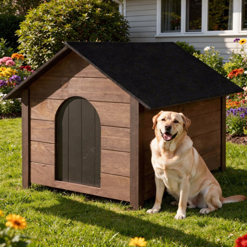 Bouda je vybavena sedlovou voděodolnou střechou, která spolehlivě odvádí déšť i sníh. Pevná konstrukce zajišťuje stabilitu i při silnějším větru. Použité materiály jsou odolné vůči povětrnostním vlivům a vhodné pro dlouhodobé venkovní používání. Celkově jde o praktické, pohodlné a bezpečné řešení pro každého psa, který tráví čas venku.
