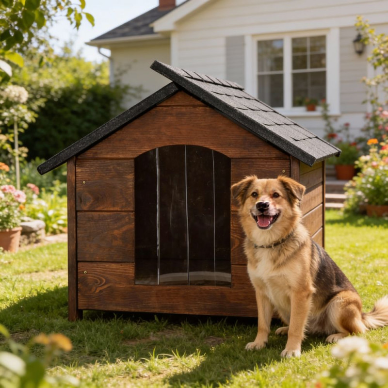 Bouda je vybavena sedlovou voděodolnou střechou, která spolehlivě odvádí déšť i sníh. Pevná konstrukce z kvalitního dřeva zajišťuje dlouhou životnost a stabilitu i při nepříznivém počasí. Použité materiály jsou vhodné pro celoroční venkovní použití a zaručují bezpečné a pohodlné zázemí pro vašeho psa.
