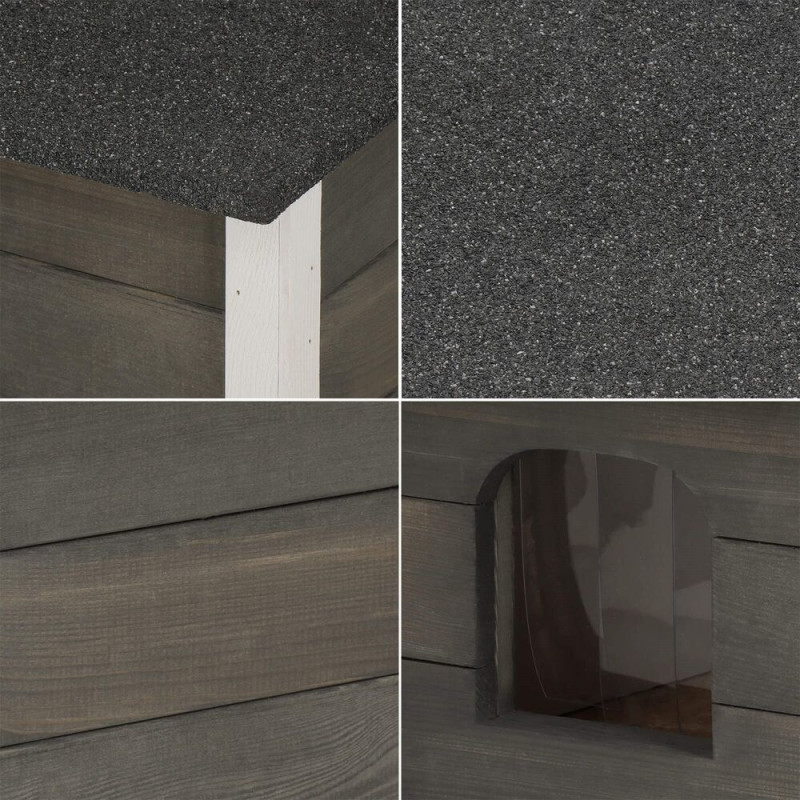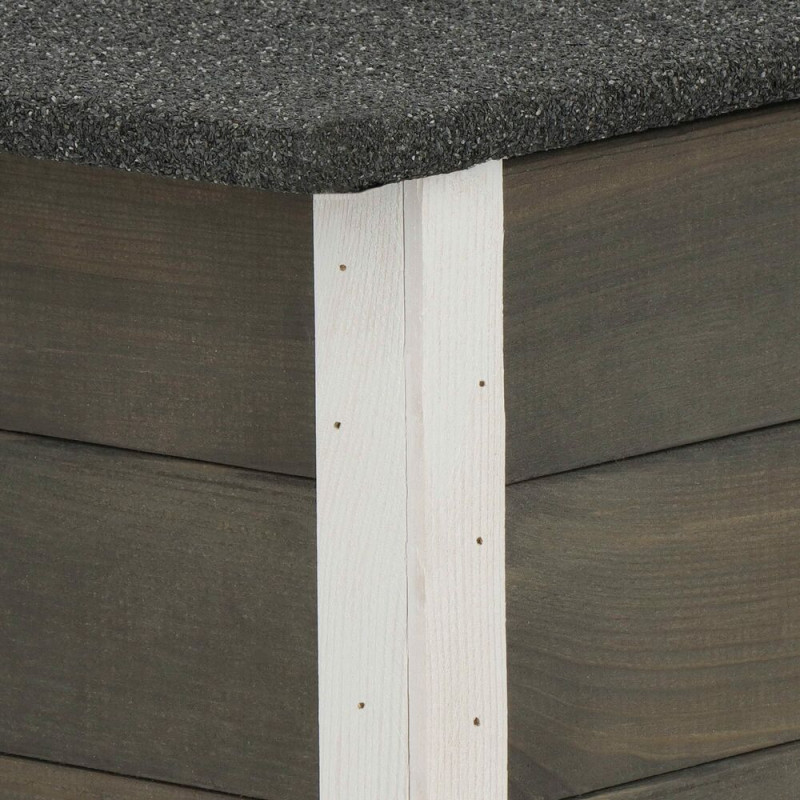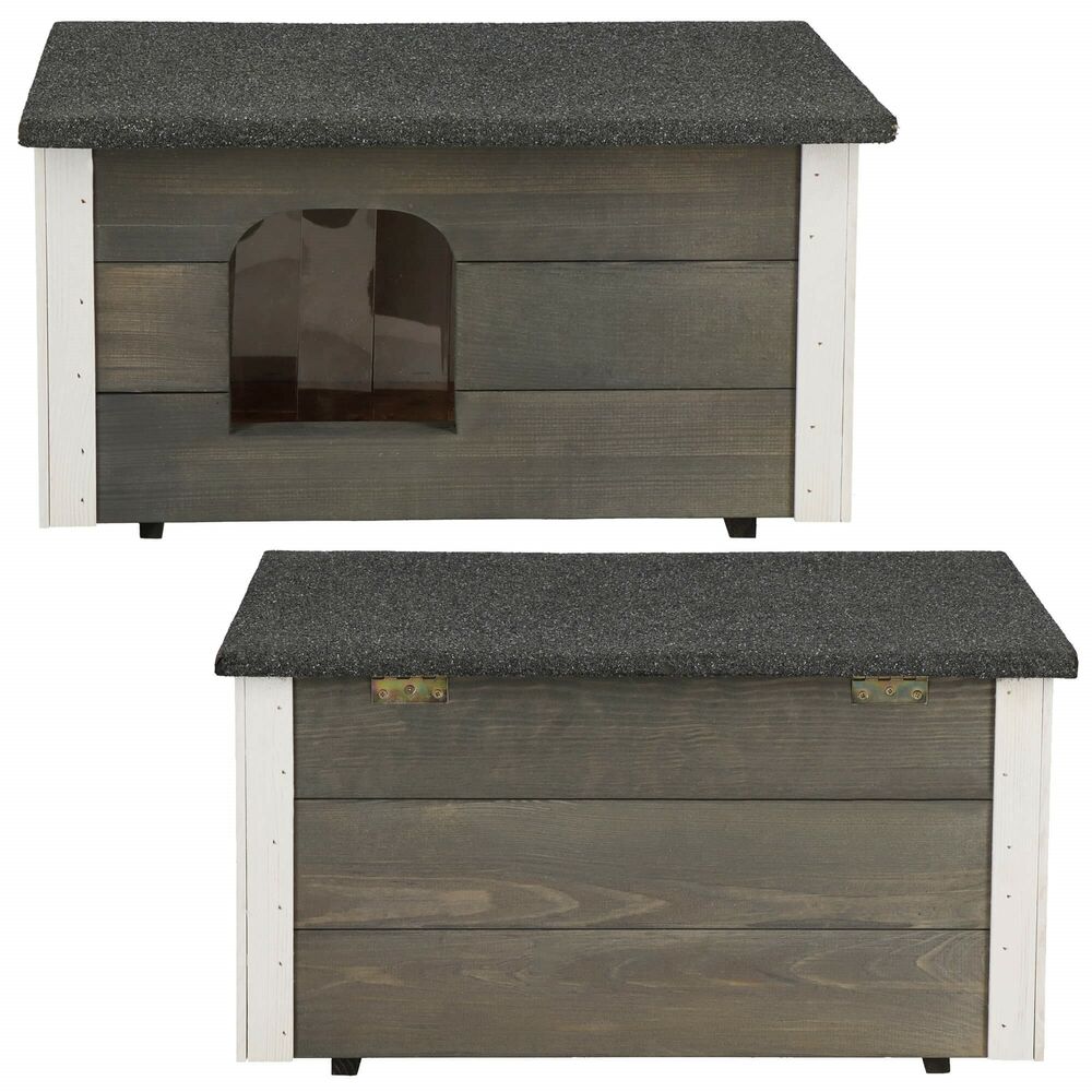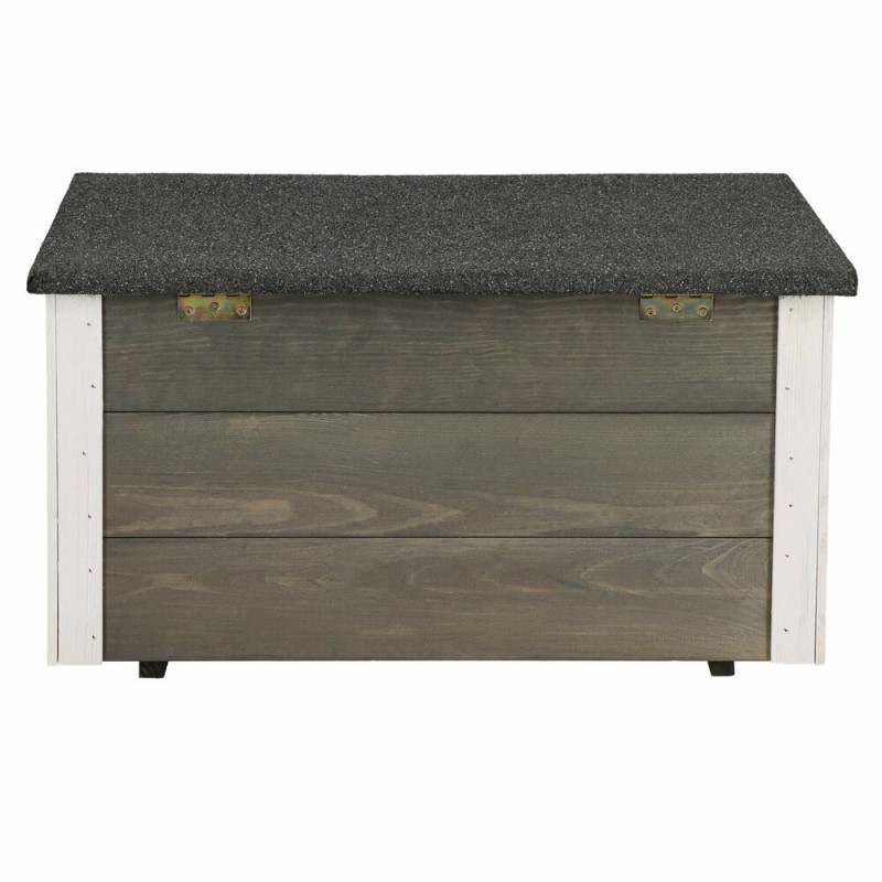 Odolná dřevěná bouda v šedém provedení poskytuje psovi pohodlný a chráněný prostor pro odpočinek venku i na zahradě. Střecha s ochranným povrchem pomáhá chránit před deštěm a chladem, průhledná lamelová dvířka omezují průvan a zvedací víko umožňuje snadné čištění i kontrolu vnitřního prostoru.