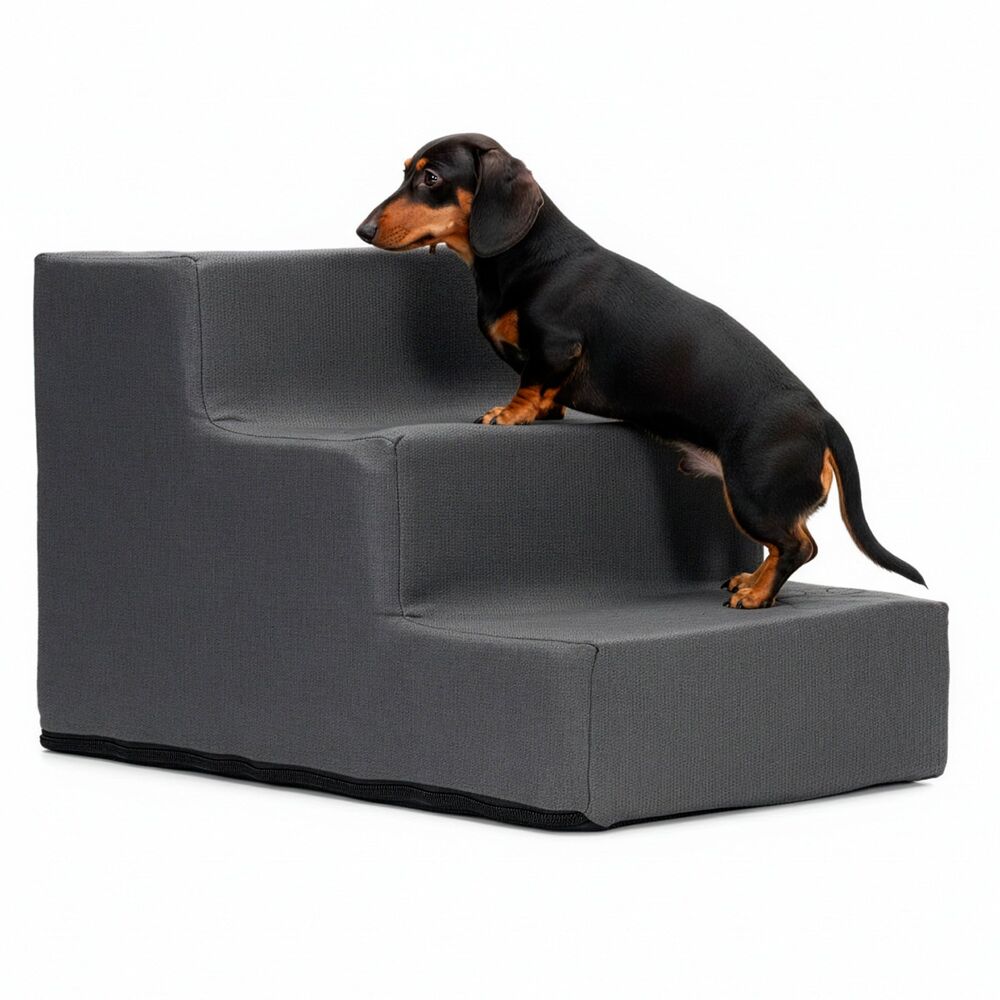Praktické schůdky usnadňují psům bezpečné nastupování do auta, na postel nebo gauč a pomáhají šetřit klouby. Tři stabilní schody poskytují pohodlný přístup, zatímco protiskluzová základna zajišťuje potřebnou stabilitu. Potah z polyesteru je opatřen zipem, lze jej snadno sejmout a prát v pračce. Lehká, ale pevná konstrukce má nosnost až 25 kg.