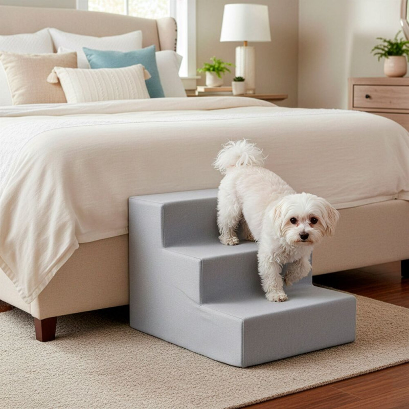 Schůdky pro psa SPRINGOS PA0338 světle šedé jsou ideálním řešením pro psy, kteří potřebují pomoc při pohybu. Umožňují snadné nastupování do auta, na postel nebo gauč a pomáhají snižovat zátěž kloubů, zejména u menších, starších nebo rekonvalescentních mazlíčků. Díky třem schodům poskytují pohodlný a přirozený přístup bez zbytečného skákání.