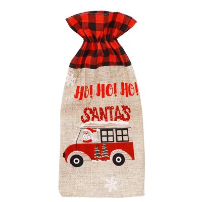 Stylový obal na láhev s vánočním motivem, který dodá každému dárku slavnostní nádech. Má optimální velikost pro většinu lahví a díky stahovací gumičce je jeho uzavření rychlé a pohodlné. Motiv je zasílán náhodně z pěti krásných vánočních vzorů, bez možnosti výběru. Rozměry 15x31 cm, materiál 100% polyester.
