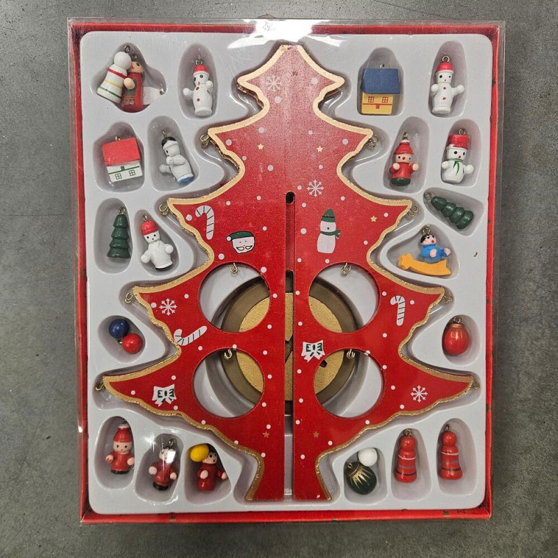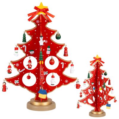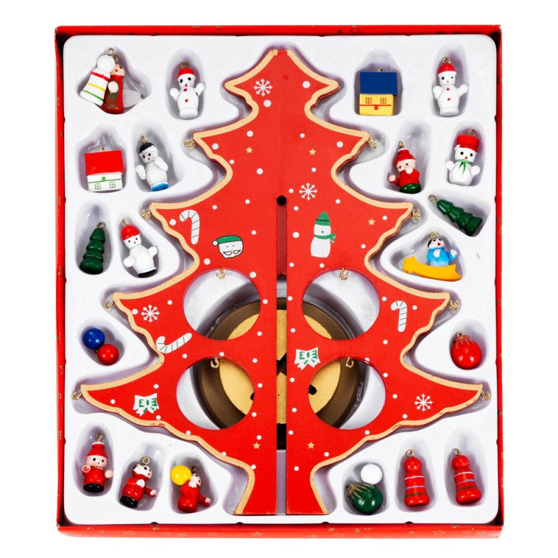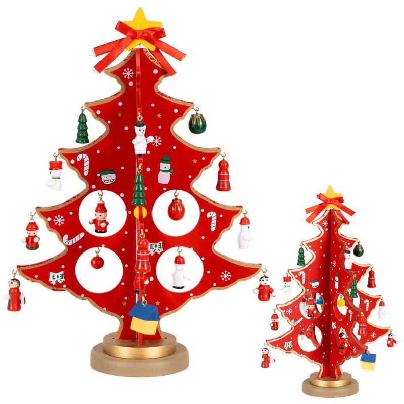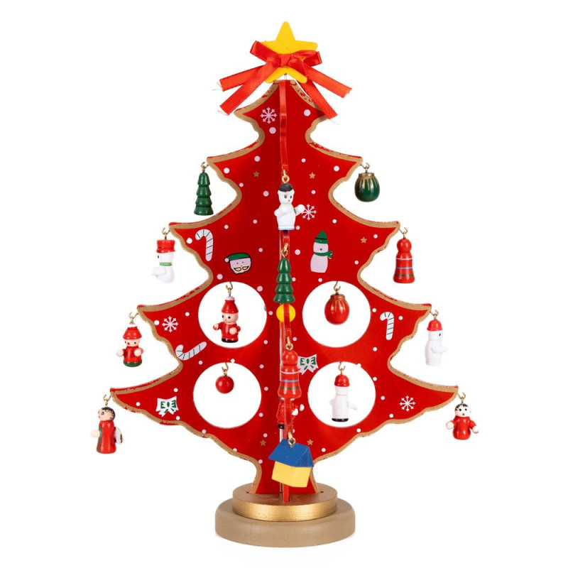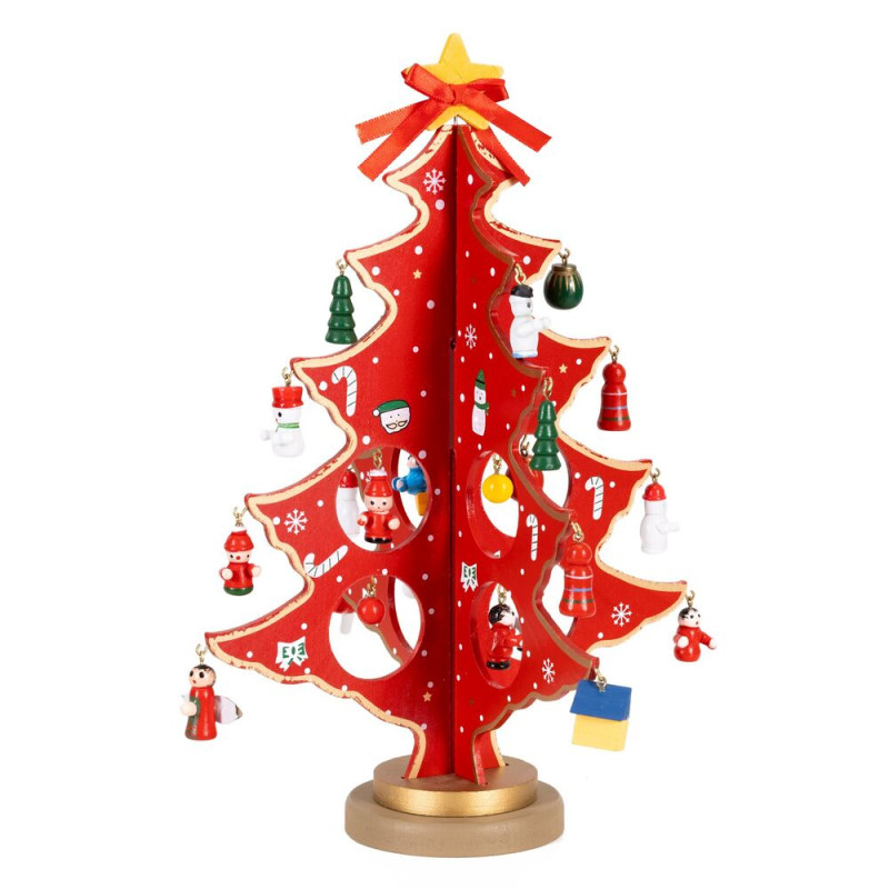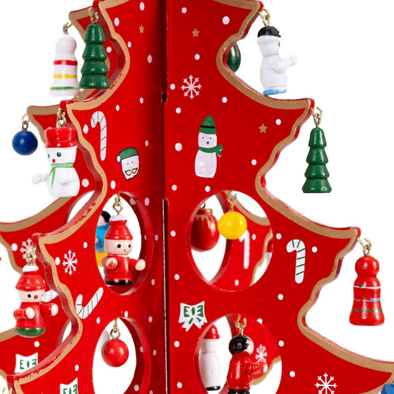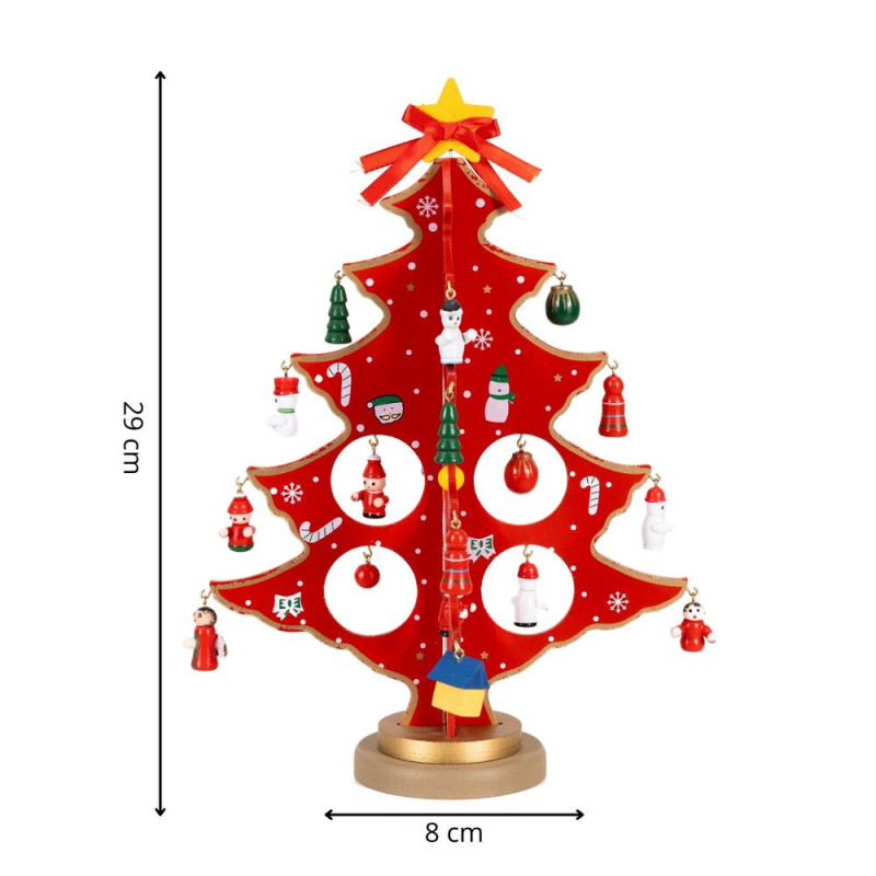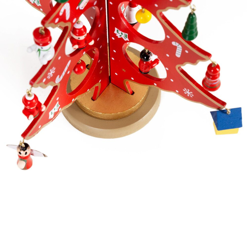 Kouzelná červená vánoční dekorace ze dřeva krásně rozjasní každý interiér. Stromeček je skládací, znovu použitelný a doplněný přibližně 25 roztomilými ozdobami v pestrých barvách. Díky pevnému dřevěnému provedení působí kvalitně a stabilně. Ideální na komodu, stůl či dětský pokoj, kde navodí radostnou sváteční atmosféru.