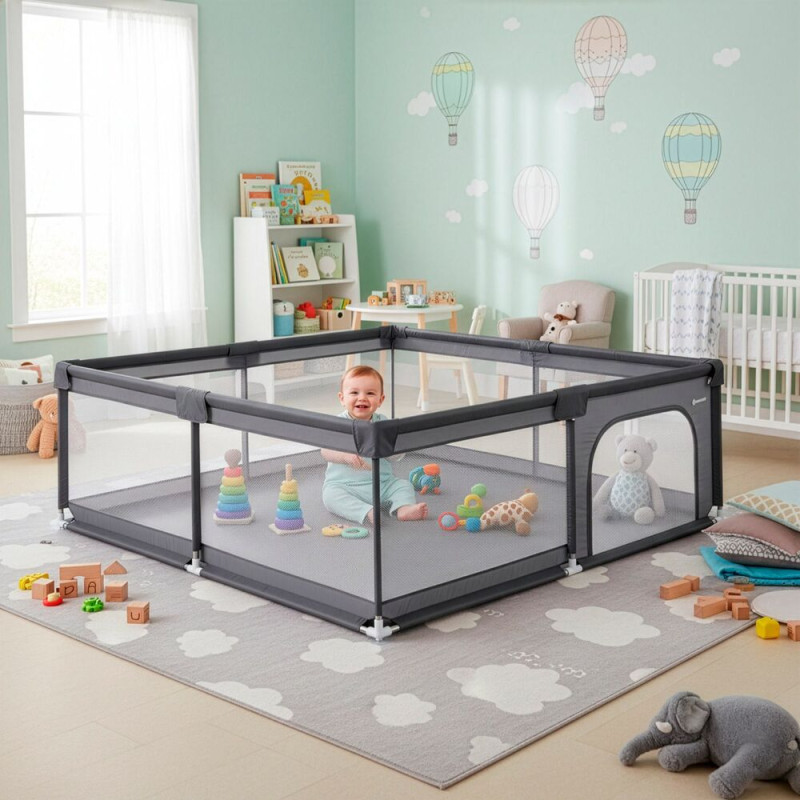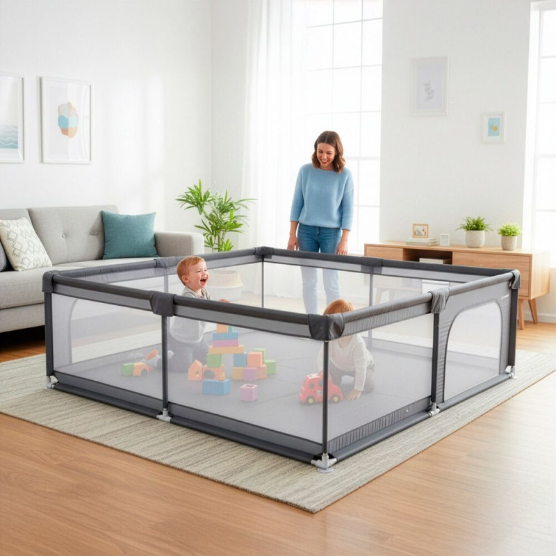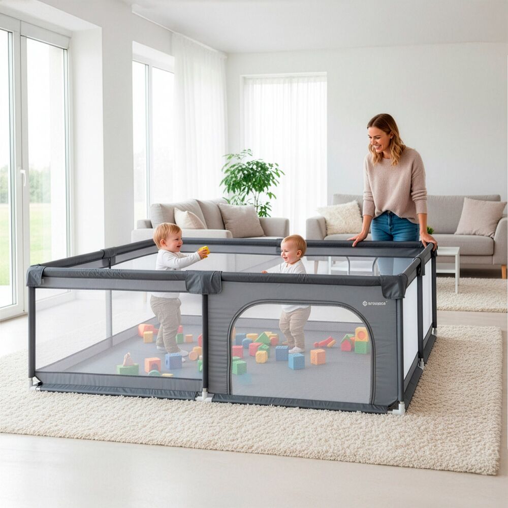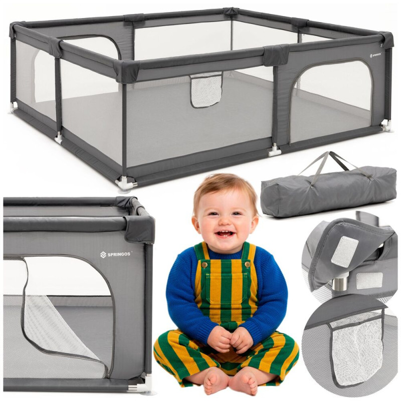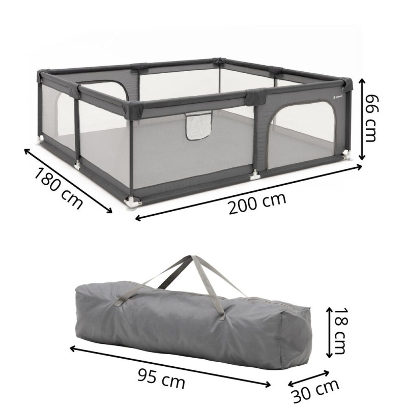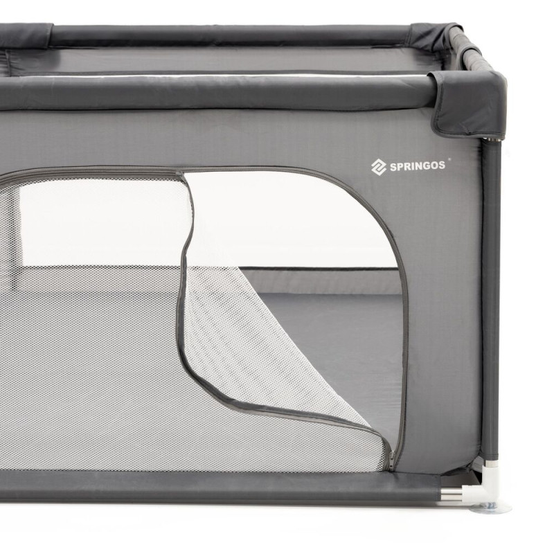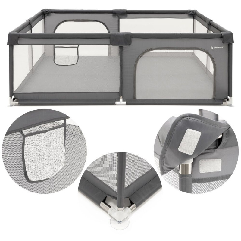 Dětská ohrádka 200x180x66 cm SPRINGOS HA7529 šedá poskytuje dítěti bezpečný a prostorný prostor pro hru i odpočinek v domácím prostředí. Díky pevné konstrukci z nerezové oceli je stabilní a odolná při každodenním používání. Síťované stěny zajišťují dobrou viditelnost a cirkulaci vzduchu, takže má rodič dítě neustále pod kontrolou.