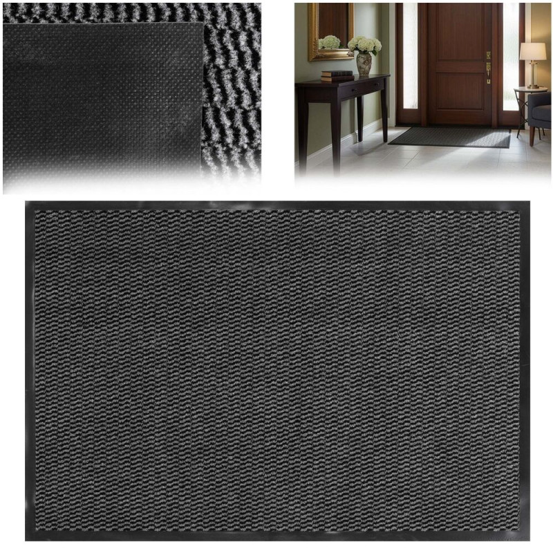 Praktický doplněk ke dveřím, který omezuje zanášení špíny a vlhkosti do interiéru. Díky větší ploše poskytuje dostatek prostoru pro pohodlné očištění bot a pomáhá udržet interiér čistý. Odolný povrch je vhodný pro časté používání, pevný okraj drží tvar a spodní strana zajišťuje stabilitu bez posouvání na podlaze. Rozměry:60x90 cm.