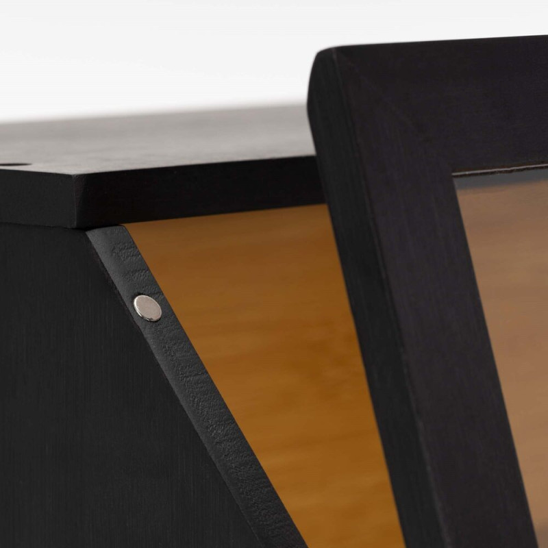 Každodenní používání zpříjemňuje magnetický zavírací systém, který zajišťuje tiché a pohodlné otevírání. Boční úchyty usnadňují přenášení a manipulaci s chlebníkem podle potřeby. Promyšlené vnitřní rozdělení pomáhá udržet pořádek a přehled, zatímco kombinace přírodního bambusu a tmavého provedení vytváří elegantní doplněk, který se hodí do moderní i klasické kuchyně.