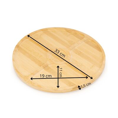 Servírovací talíř s otočnou funkcí o 360° je ideální pro pohodlné a stylové podávání pochutin, sýrů, uzenin i dezertů. Bambusový materiál působí přírodně a elegantně a hodí se pro každodenní i slavnostní stolování. Průměr 33 cm nabízí dostatek prostoru pro servírování. Talíř umožňuje snadný přístup ke všem dobrotám díky plynulému otáčení.