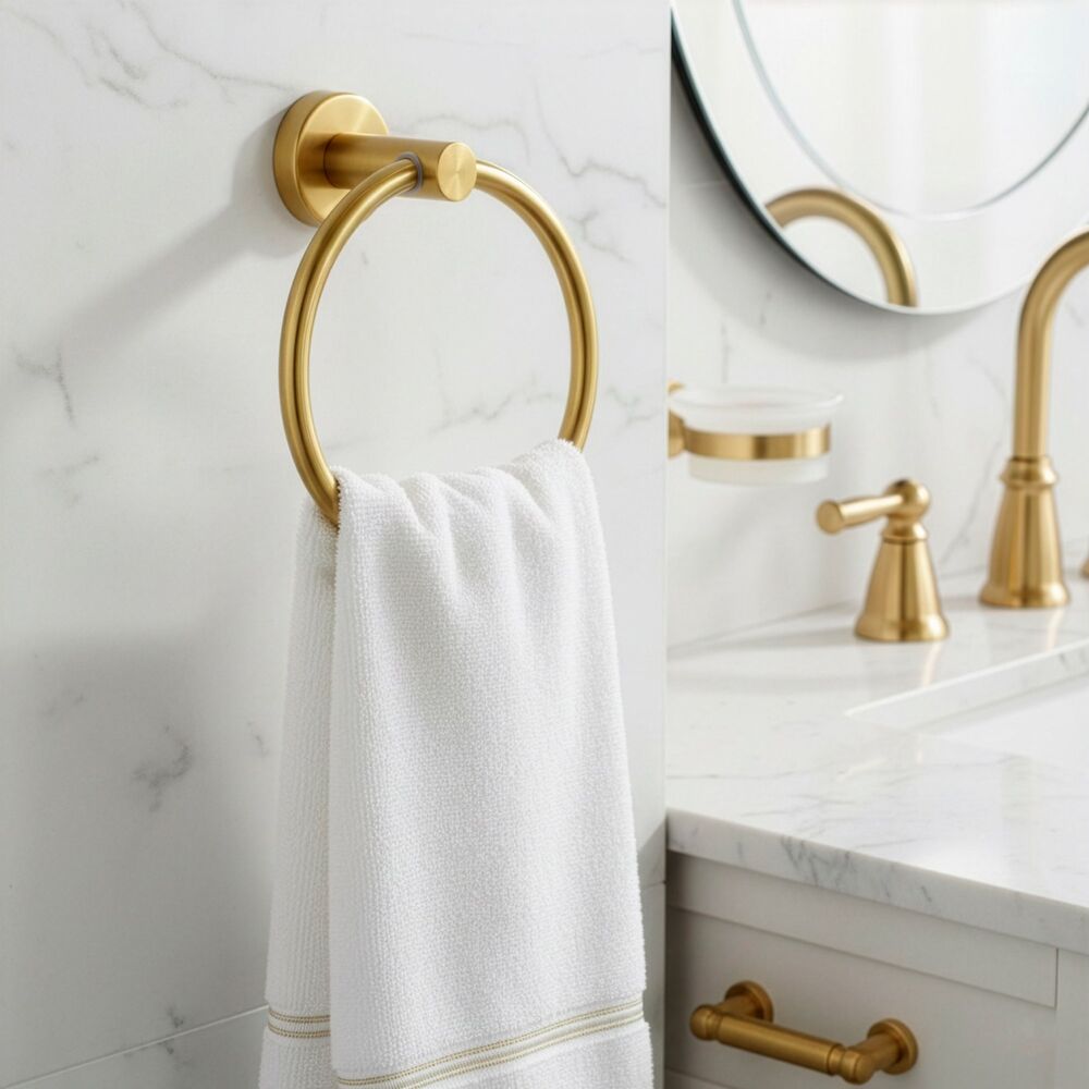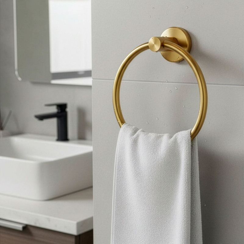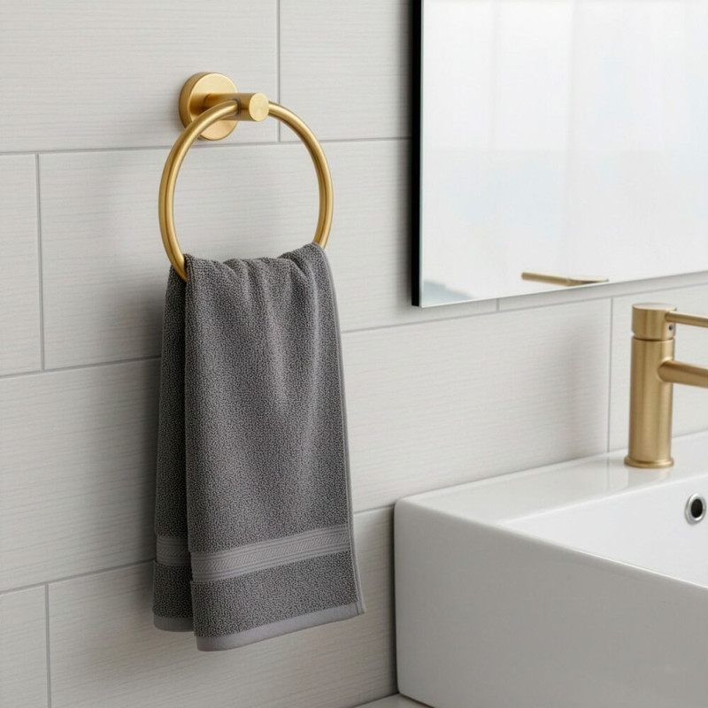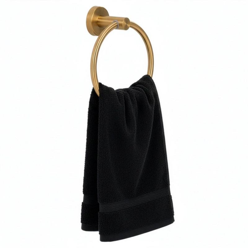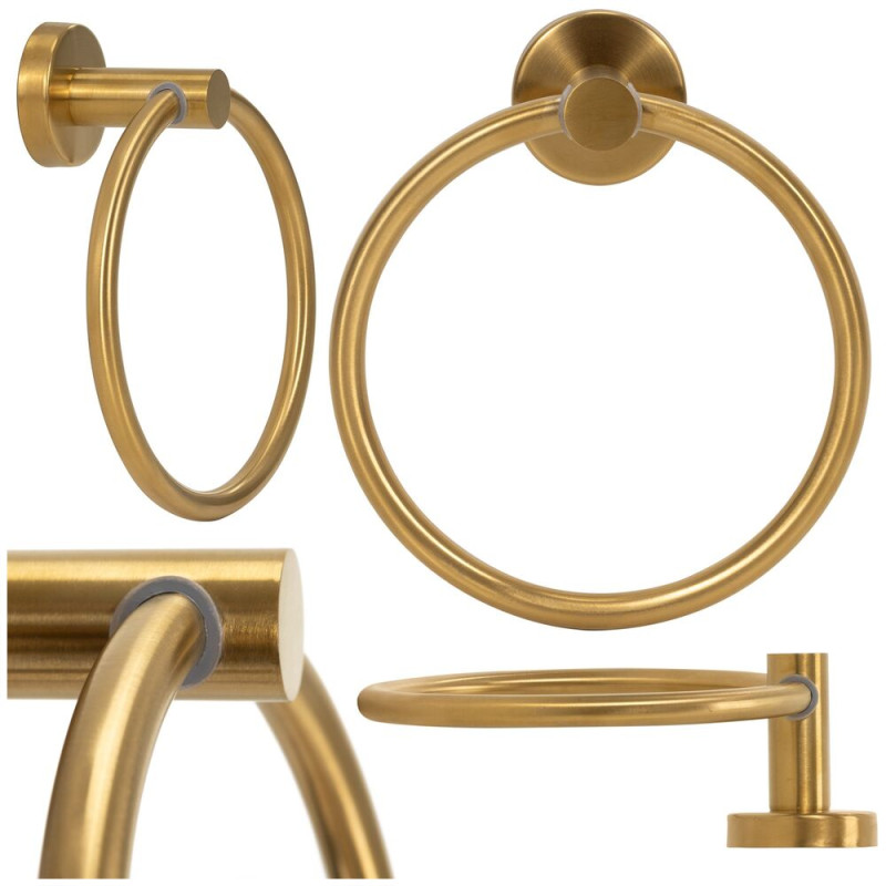 Elegantní kruhový držák v lesklém zlatém provedení je stylovým doplňkem do koupelny i toalety. Nabízí pohodlné zavěšení ručníků a pomáhá udržet prostor přehledný. Pevné kovové zpracování zajišťuje stabilitu při každodenním používání, zatímco luxusní vzhled dodá interiéru nádech elegance. Snadná montáž s přiloženým příslušenstvím umožní rychlé upevnění bez zbytečných komplikací.