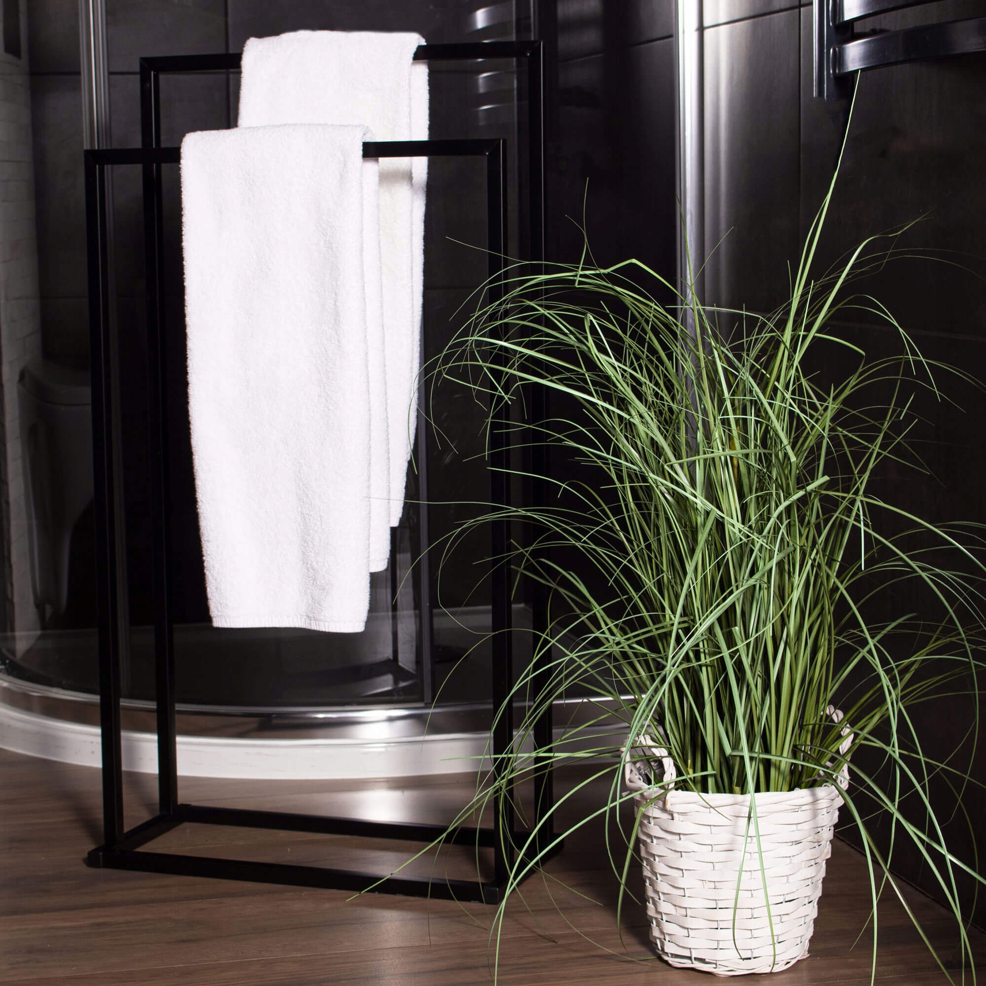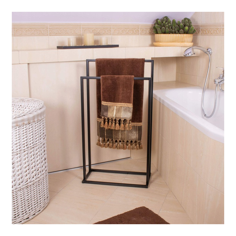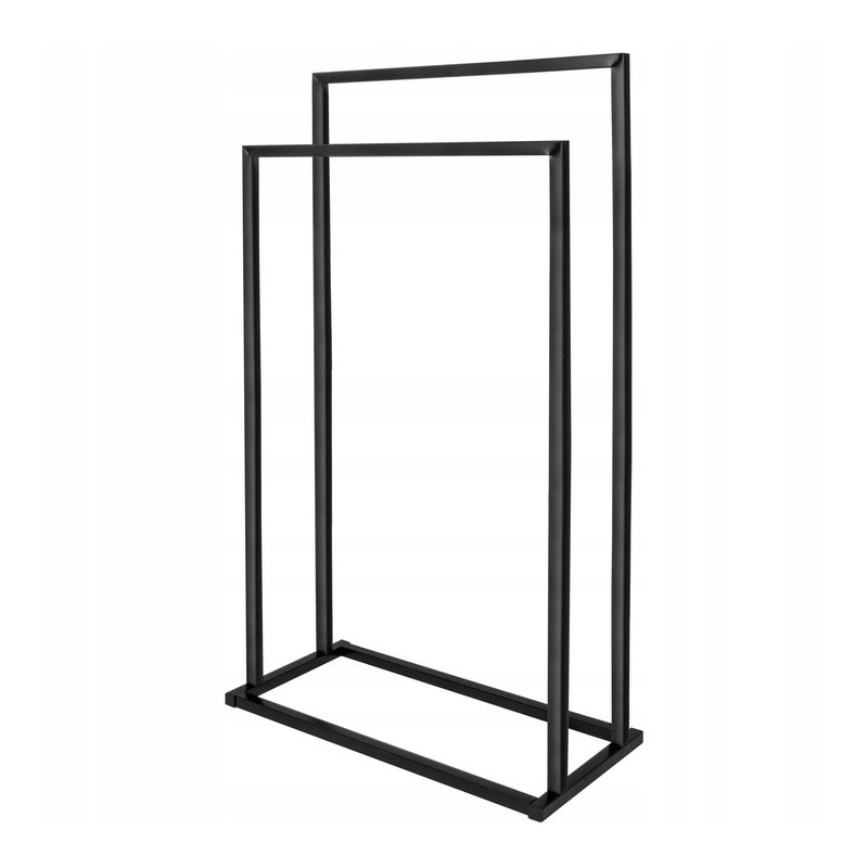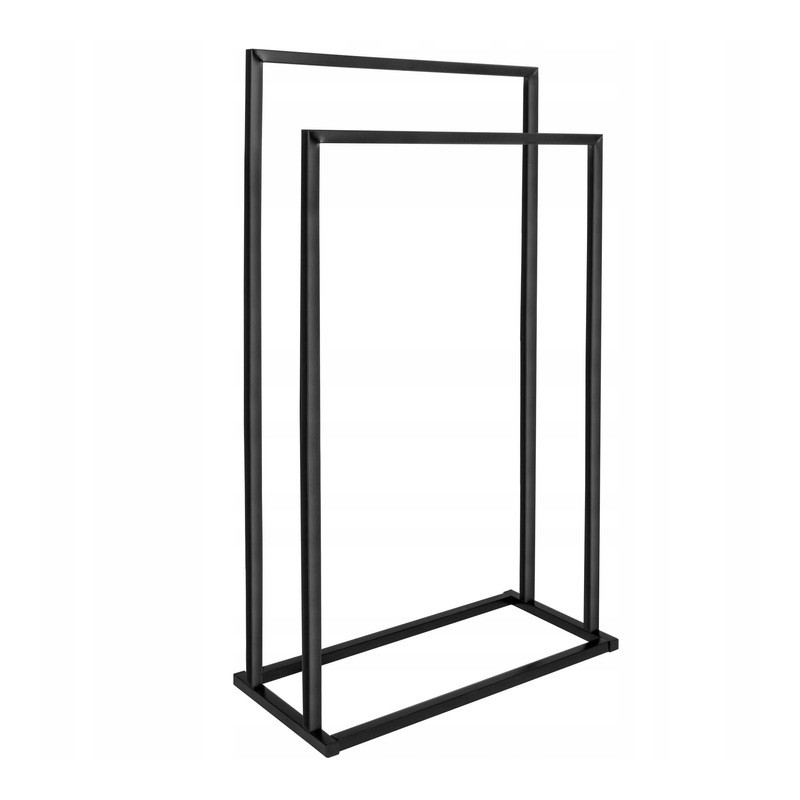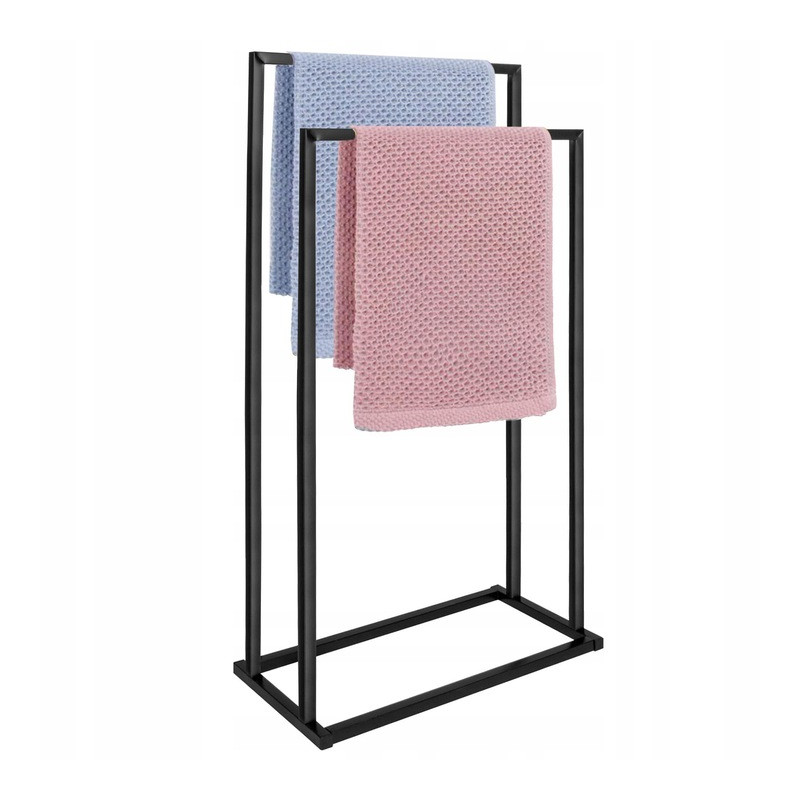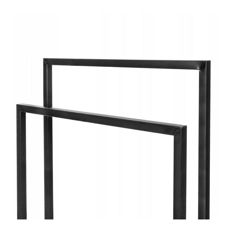 Základna věšáku na ručníky je velmi stabilní. Široký rám v černé barvě se hodí do každé domácnosti. Je vyrobený z odolného lakovaného kovu a dodává výrobku eleganci.