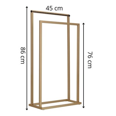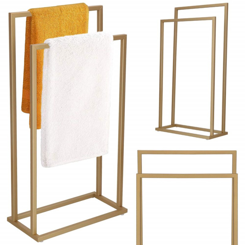 Elegantní a praktický doplněk do koupelny, který poskytuje přehledné zavěšení ručníků bez nutnosti vrtání. Dvě úrovně umožňují pohodlné sušení i organizaci, zatímco stabilní kovová konstrukce s matným povrchem působí moderně a vkusně. Protiskluzové podložky zajišťují bezpečné postavení na podlaze.