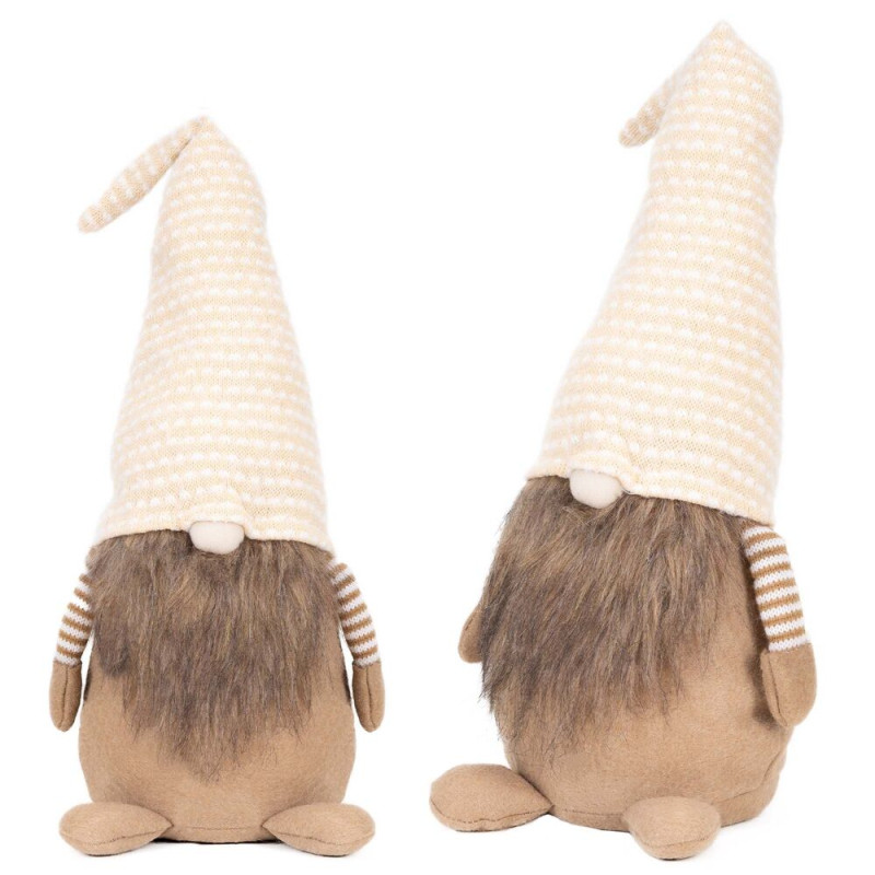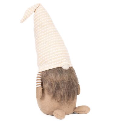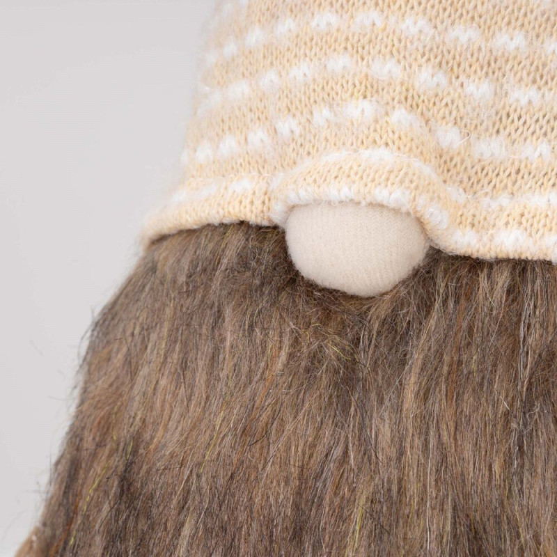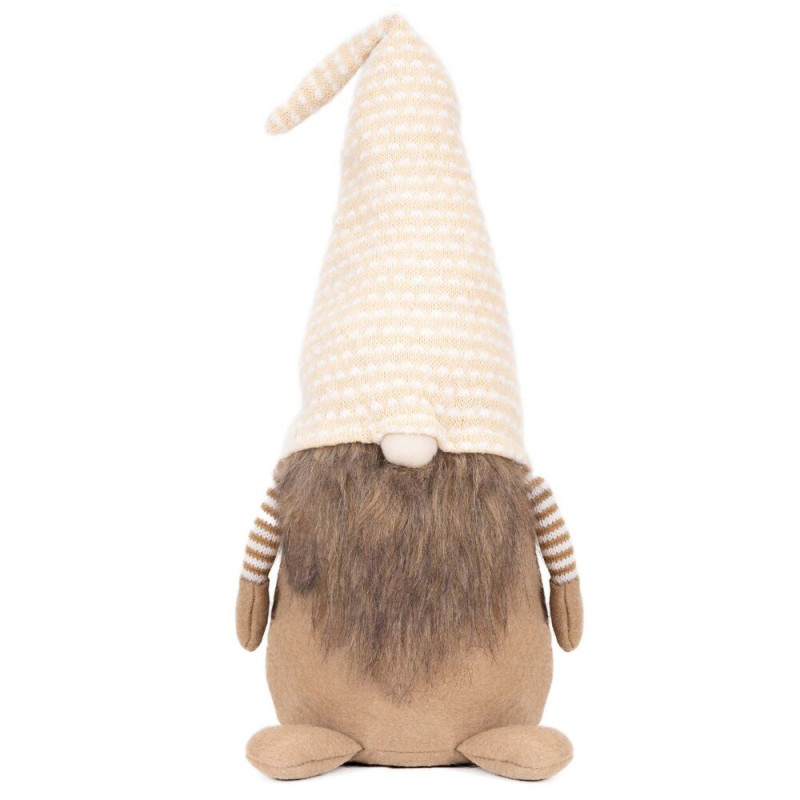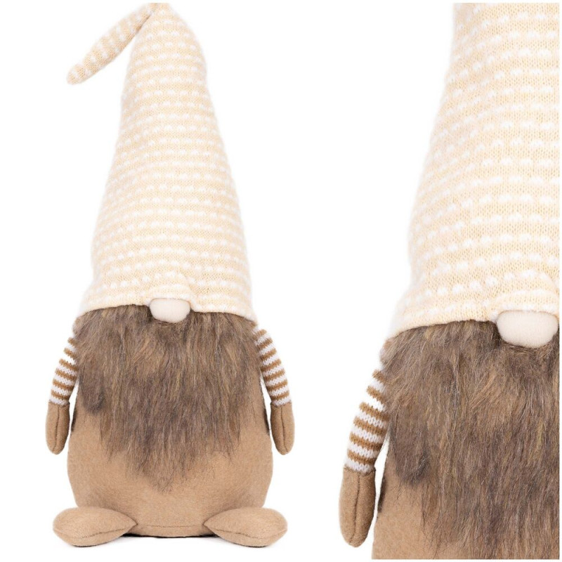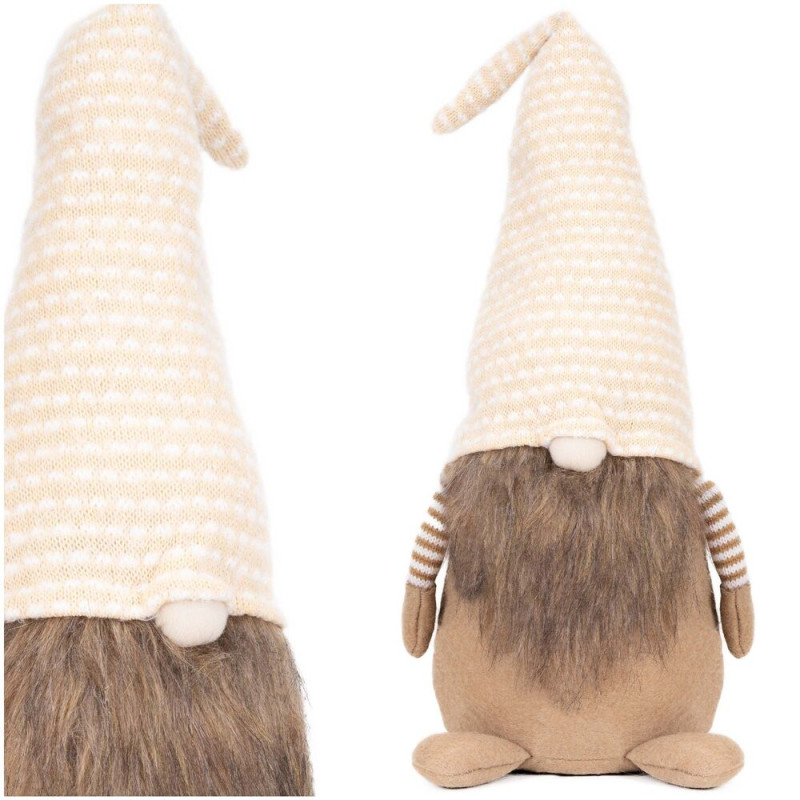 Skřítek GNOM s béžovo-bílou čepicí 51cm, vánoční dekorace