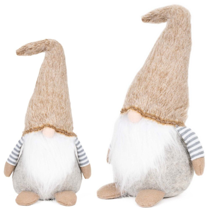 Skřítek GNOM s hnědo-bílou čepicí 52cm, vánoční dekorace