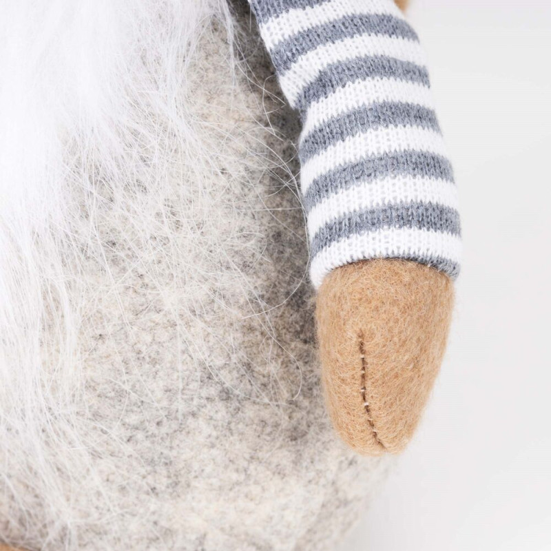Tento půvabný vánoční skřítek v bílé, šedé, hnědé a krémové barvě okamžitě dodá vašemu domovu kouzelnou zimní atmosféru. Měkké materiály z polyesteru a bavlny jsou příjemné na dotek a tvarovatelná čepice umožňuje libovolné aranžování. Skvěle se hodí na polici, komodu či pod stromeček, kde krásně doplní vaši vánoční výzdobu.