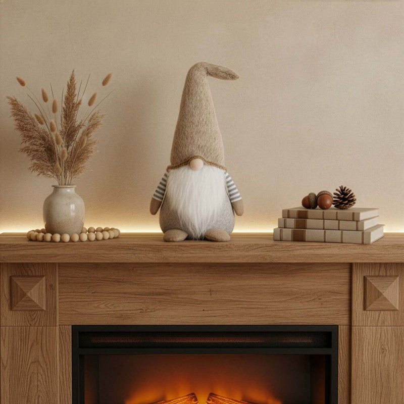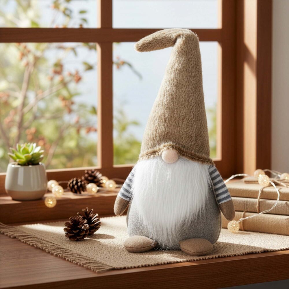 - Půvabná dekorace vánočního skřítka v jemných zimních tónech