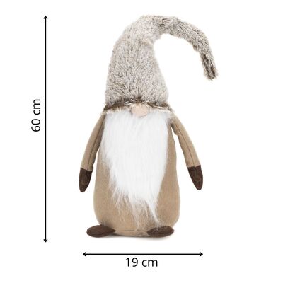 Tento půvabný skřítek v bílo-šedohnědých a krémových tónech krásně doplní zimní a vánoční výzdobu. Je vyroben z příjemné směsi polyesteru a bavlny a jeho čepice s drátem umožňuje volné tvarování. Skvěle vynikne na polici, komodě i pod stromečkem.