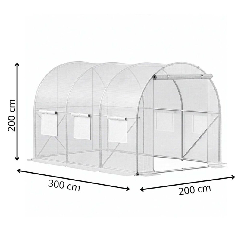 Perfektní pomocník na zahradu pro pěstování zeleniny. Fóliovník na rajčata, okurky, papriky a další plodiny poskytuje optimální podmínky pro jejich růst. Vysoce odolná fólie s UV ochranou, zesílená konstrukce se třemi výztuhami ve stropě a dvěma na bocích zajišťuje neobyčejnou stabilitu. Větrací síťovaná okna podporují správnou cirkulaci vzduchu, široký vchod s roletkou a zipem umožňuje snadný přístup. Obvodové kotvy se sňurkou zajistí pevné uchycení k zemi.