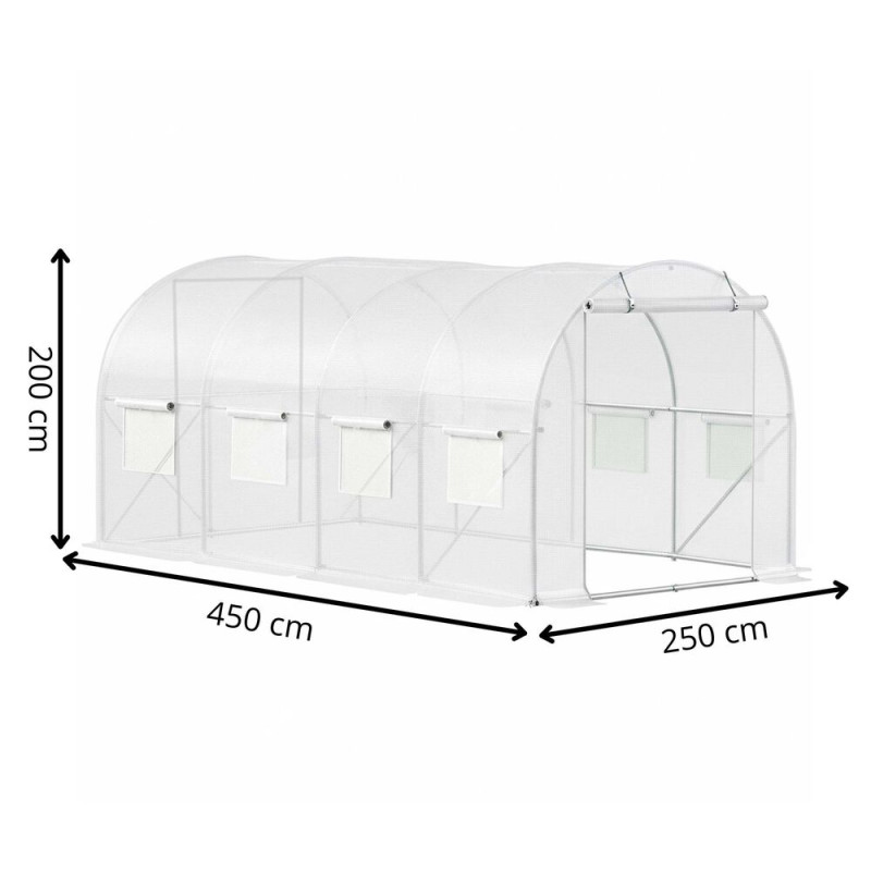 Vysoce pevná a odolná fólie s UV ochranou pro foliovníky rozměru 4,5x2,5x2 m. Poskytuje spolehlivou ochranu rostlin před nepříznivými vlivy počasí. Větrací síťovaná okna zajišťují optimální cirkulaci vzduchu, zatímco široký vchod s roletkou a zipem umožňuje snadný přístup. Obvodové pásy do země zlepšují stabilitu a chrání fóliovník před větrem. Ideální řešení pro obnovu dosloužilé fólie.