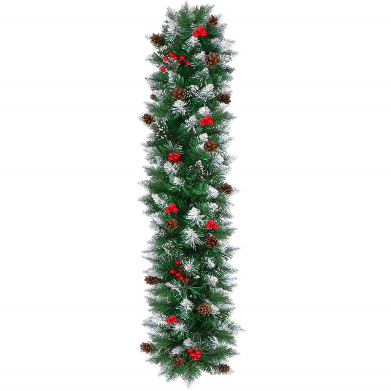 - Typ: girlanda z umělých jehličnatých větví, zasněžená, s dekoracemi
