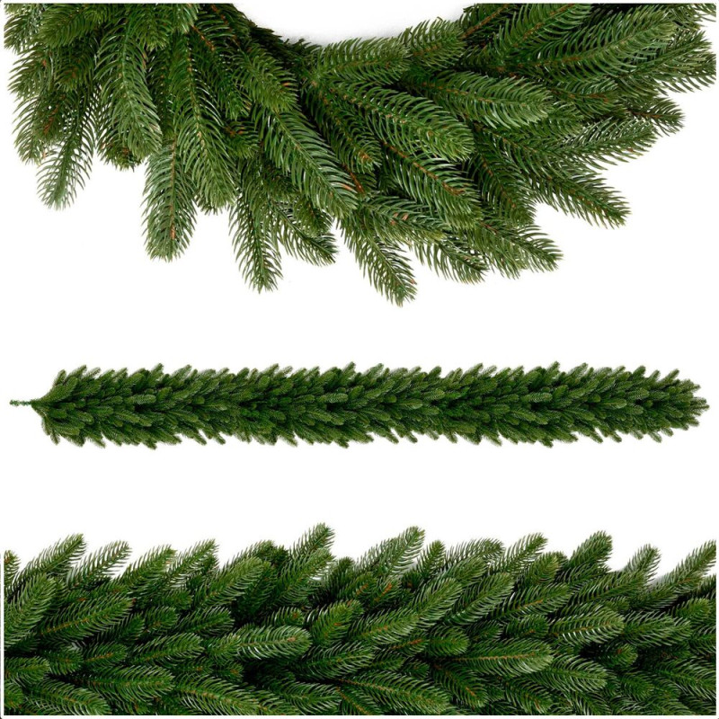 Vánoční řetěz Girlanda z větviček hustá 200 cm zelená přináší do každého interiéru nebo exteriéru autentickou atmosféru zimních svátků. Díky dvoubarevnému provedení větviček působí mimořádně přirozeně a skvěle imituje skutečné jehličí. Díky svému provedení je velmi hustá, má snadno tvarovatelnou strukturu a po naaranžování pevně drží svůj tvar, což z ní dělá univerzální dekoraci na zábradlí, krbové římsy či dveře. Díky zakončení na koncích lze navíc propojit více girland dohromady, a tím jednoduše vytvořit větší aranžmá.