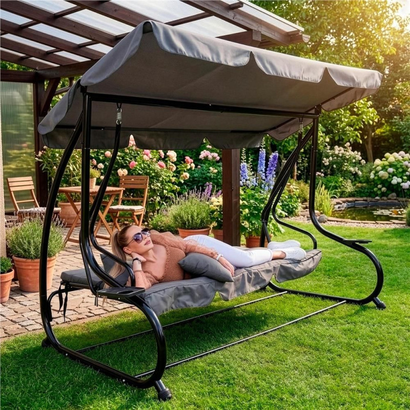 Zahradní houpačka pro 4 osoby SPRINGOS LINDA GS0003 šedá nabízí dostatek místa až pro čtyři osoby, takže si odpočinek užijete s rodinou i přáteli. Díky širokému sedáku a možnosti rozložení do lehu poskytuje maximální pohodlí při každém použití.