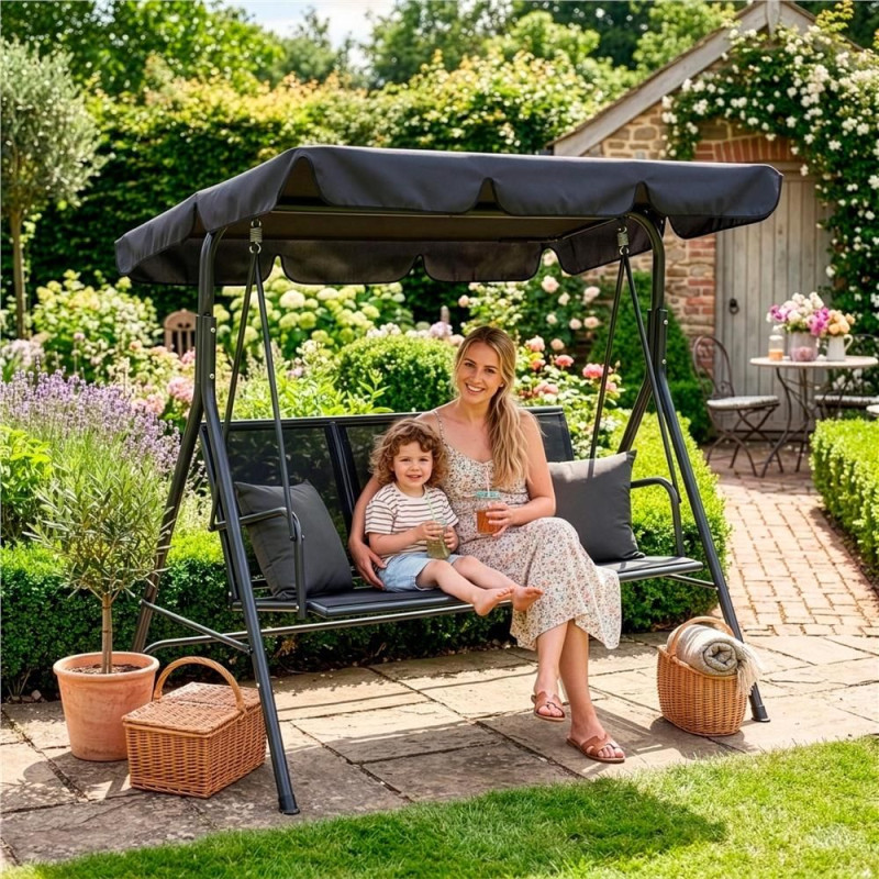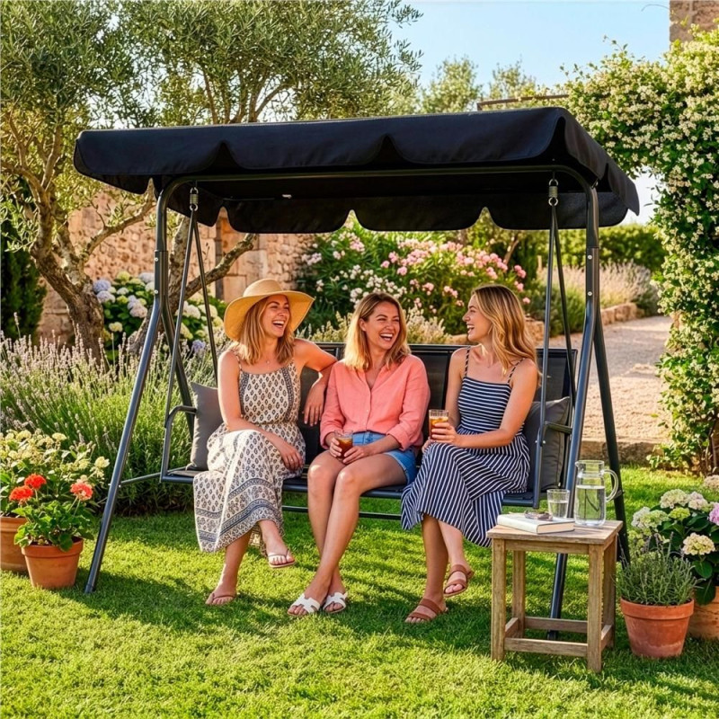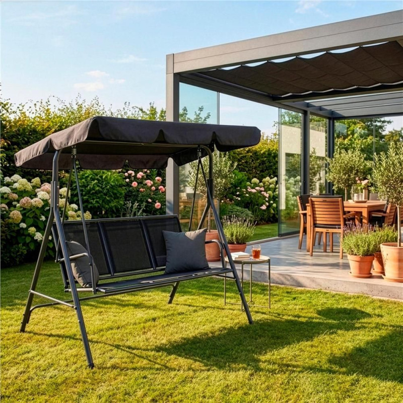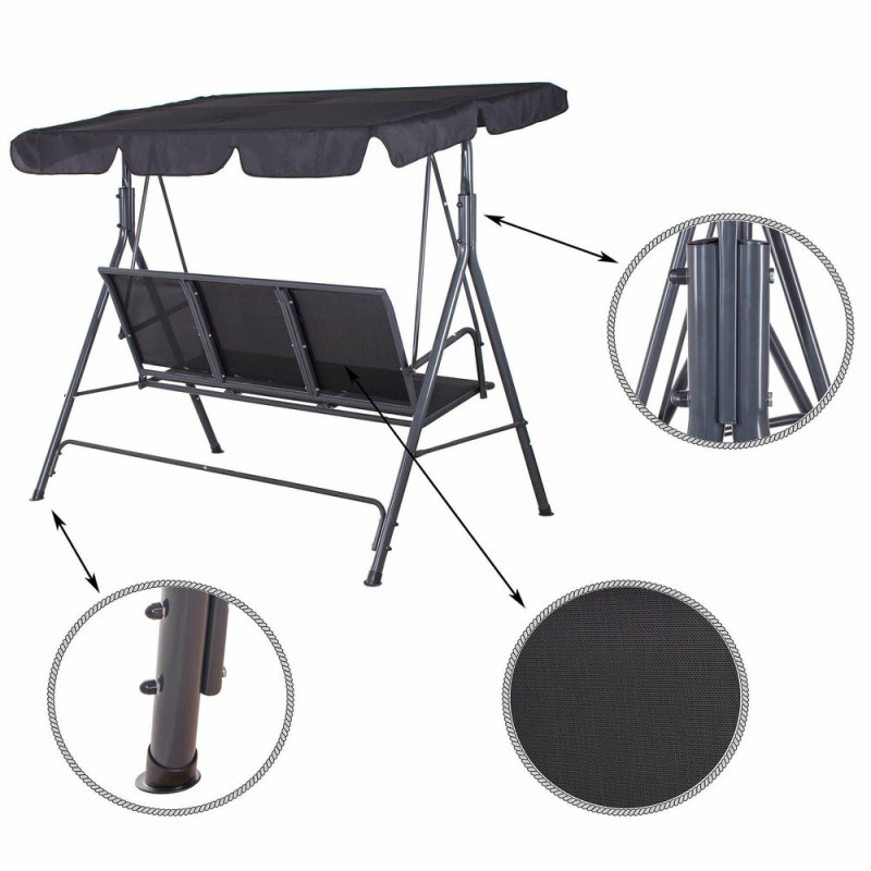 Zahradní houpačka pro 3 osoby SPRINGOS LUNA GS0014 černá