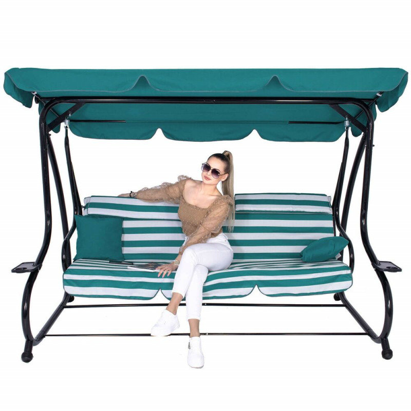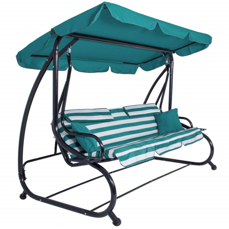 Zahradní houpačka SPRINGOS MALIBU 3-4-místná, zeleno-bílá