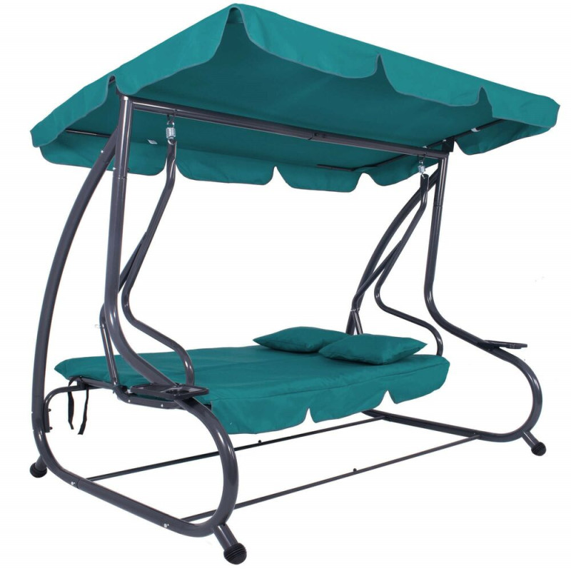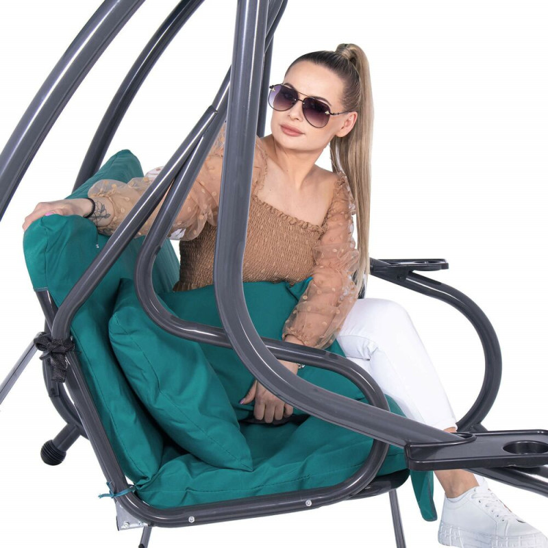 Komfortní zahradní houpačka pro klidné chvíle a ničím nerušený odpočinek na vaší zahradě. Nabízí místo pro 3 osoby a možnost polohování do lehu. Pevná kovová konstrukce. Pohodlný podsedák. Nastavitelná stříška. Voděodolné textilie s UV filtrem. Praktické odkládací stolky. Protiskluzové konce nohou.