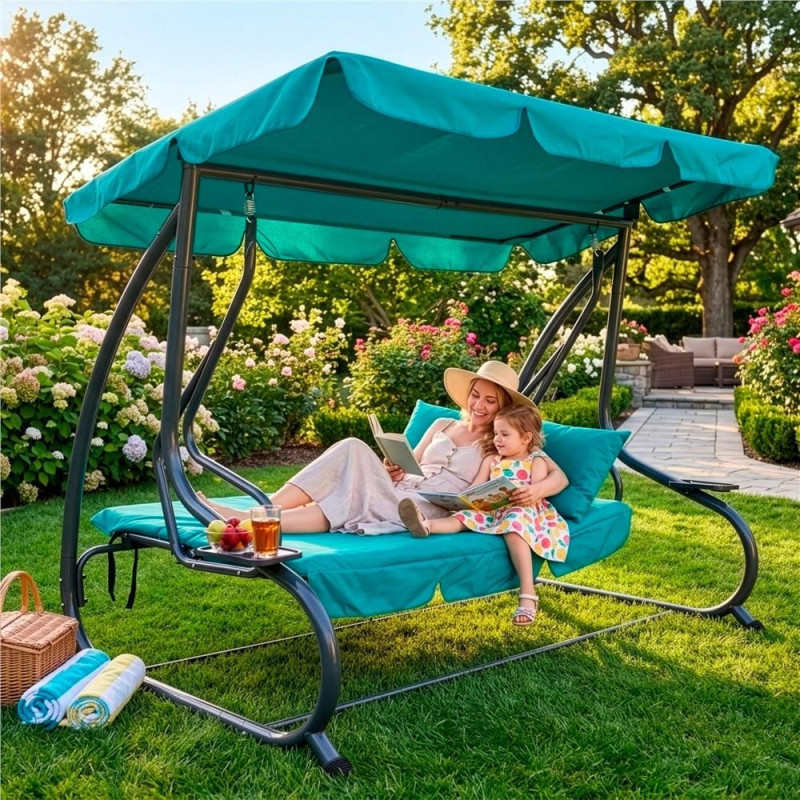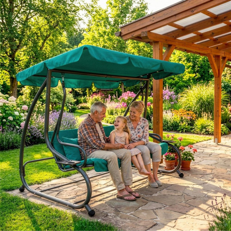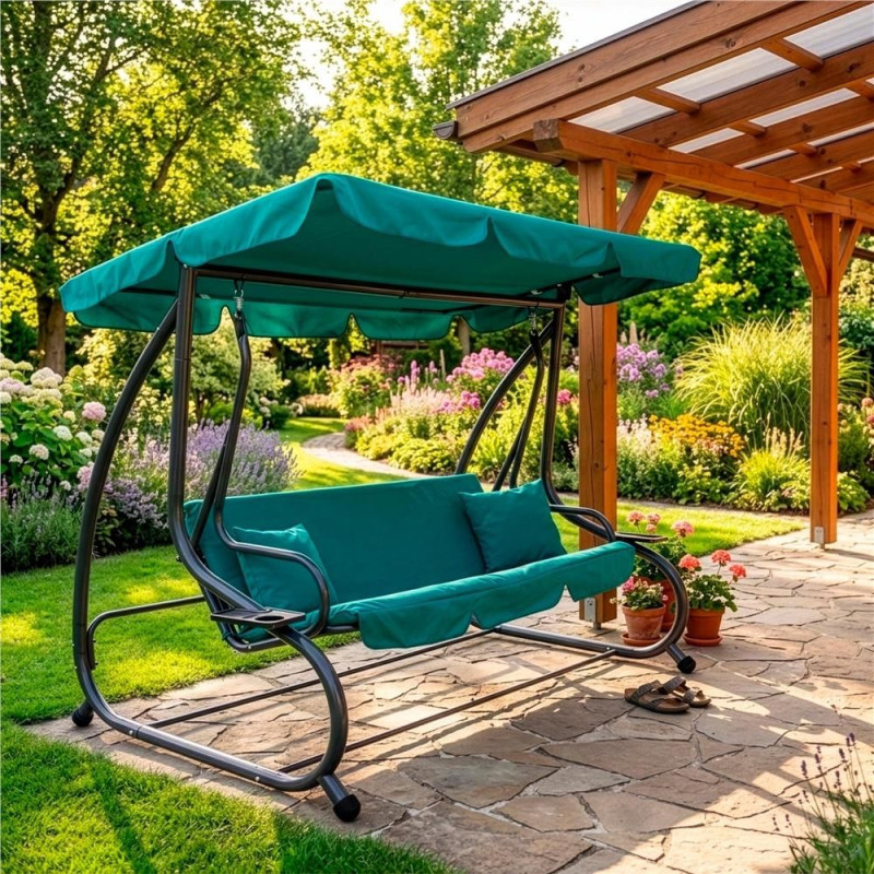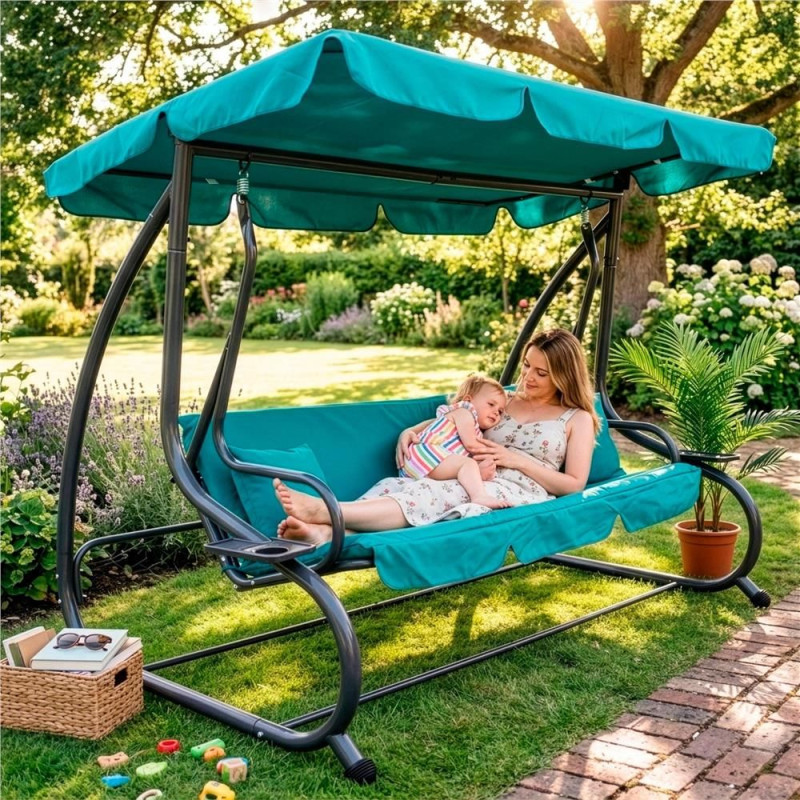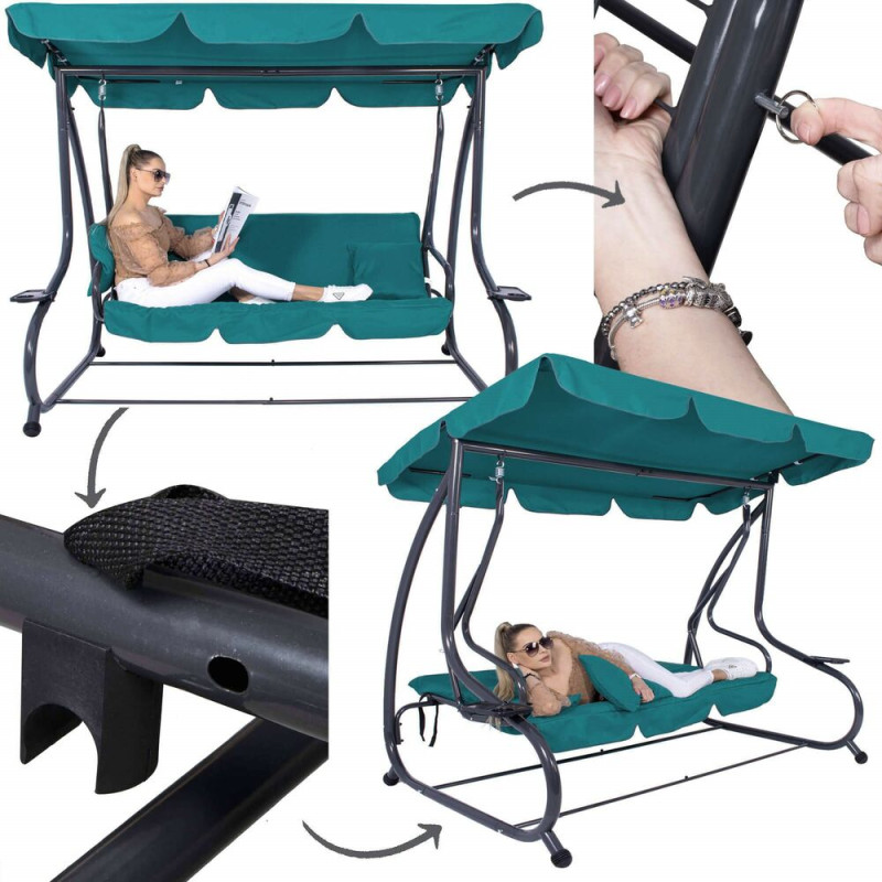Zahradní houpačka pro 3 osoby SPRINGOS VENEZIA GS0020 tyrkysová nabízí dostatek místa pro tři osoby, takže si odpočinek užijete s rodinou i přáteli. Díky širokému sedáku a možnosti rozložení do lehu poskytuje maximální pohodlí při každém použití.