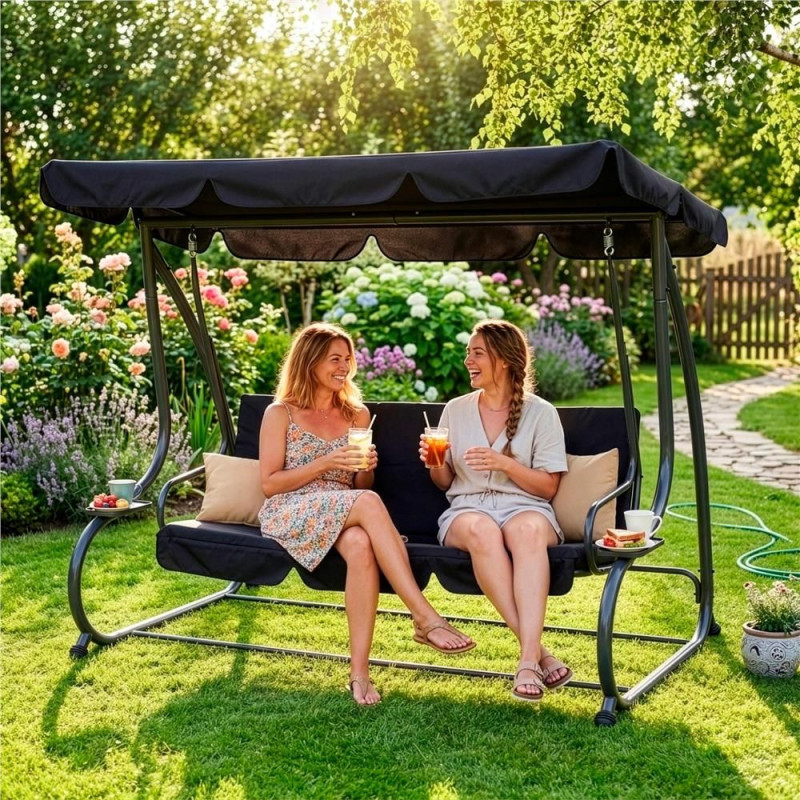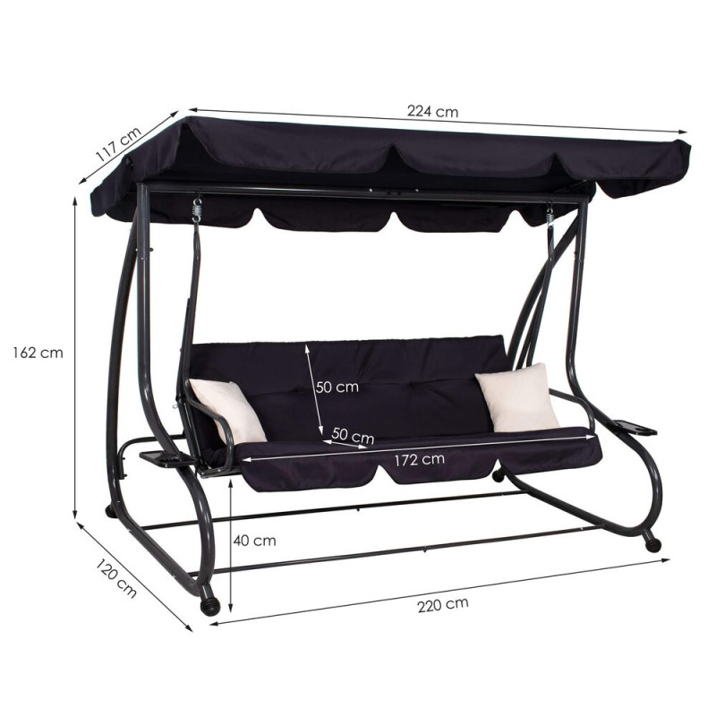 Zahradní houpačka SPRINGOS PALERMO 3-místná, černá