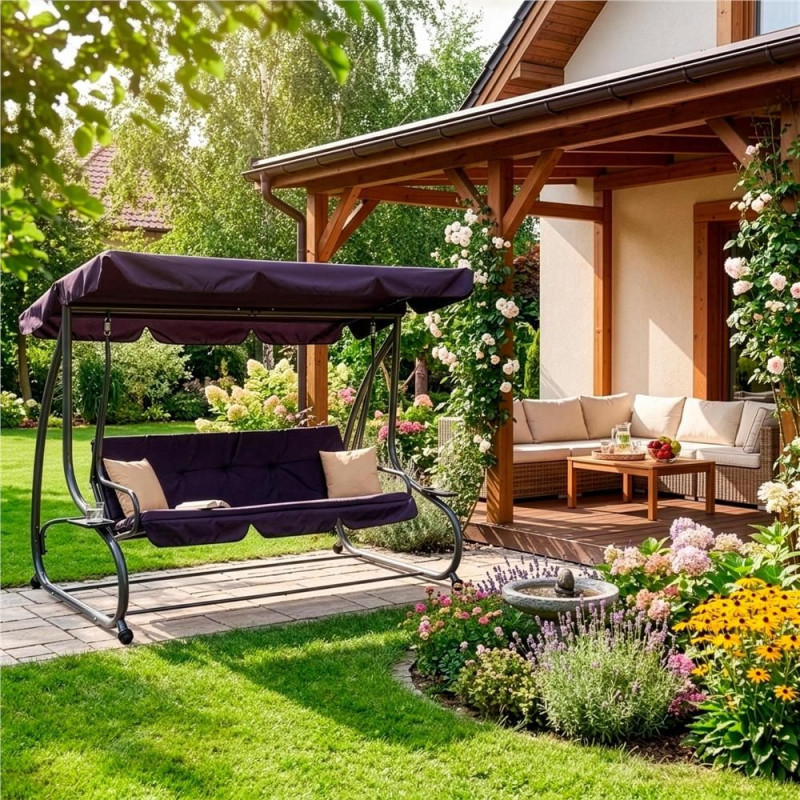 Komfortní zahradní houpačka pro klidné chvíle a ničím nerušený odpočinek na vaší zahradě. Nabízí místo až pro 4 osoby a možnost polohování do lehu. Pevná kovová konstrukce. Pohodlný podsedák. Nastavitelná stříška. Voděodolné textilie s UV filtrem. Praktické odkládací stolky. Protiskluzové konce nohou.